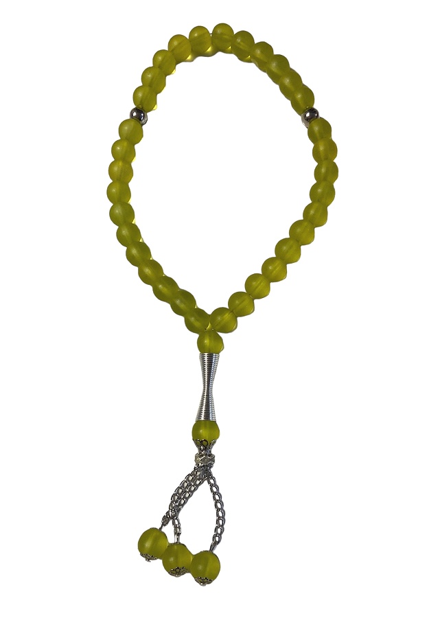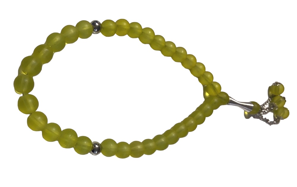 Chapelet (Subha) de luxe à 33 perles de couleur Vert fluo avec parties argentées Deco & Cadeau