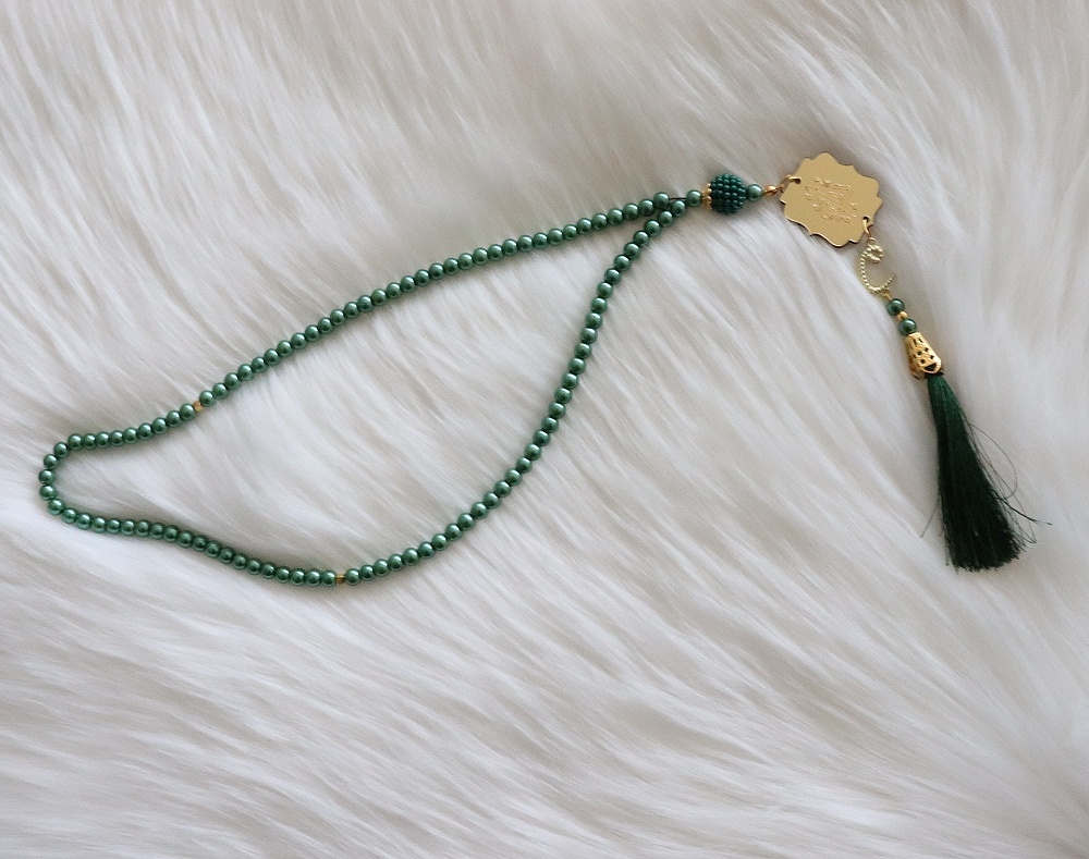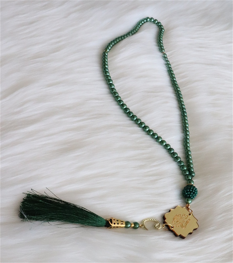 Chapelet "Sebha" 99 grains couleur Vert Foncé avec le Nom d'Allah et du Prophète sur chaque grain - REF. 37227 (4.90 €)