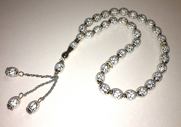 Chapelet blanc 33 grains ovales - "Sebha" de luxe avec motifs treillis dorés Divers