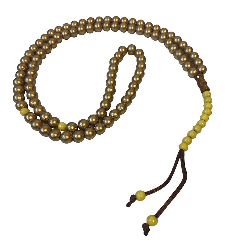 Chapelet doré (Sebha) à 99 perles dorées avec ponpon à billes jaune moutarde...