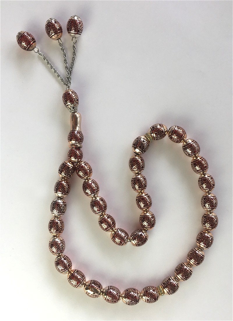 Chapelet islamique (Sabha) deluxe a 33 grains couleur rouge dore