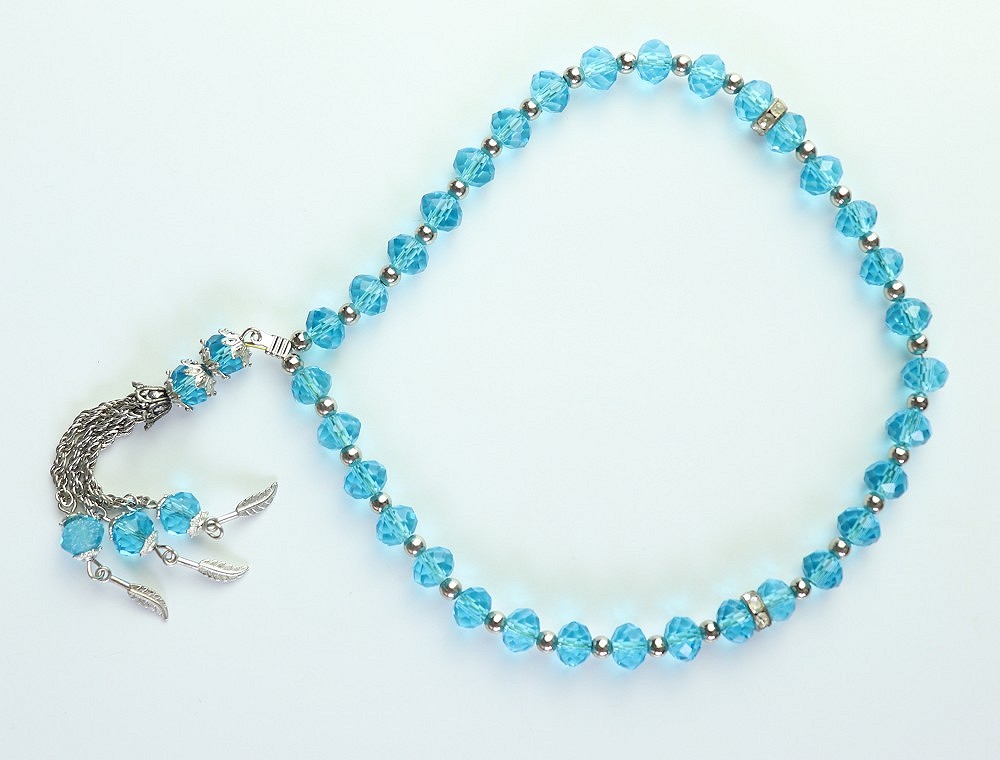 Chapelet musulman (Tasbih) de luxe a 33 grains en cristal de couleur bleu