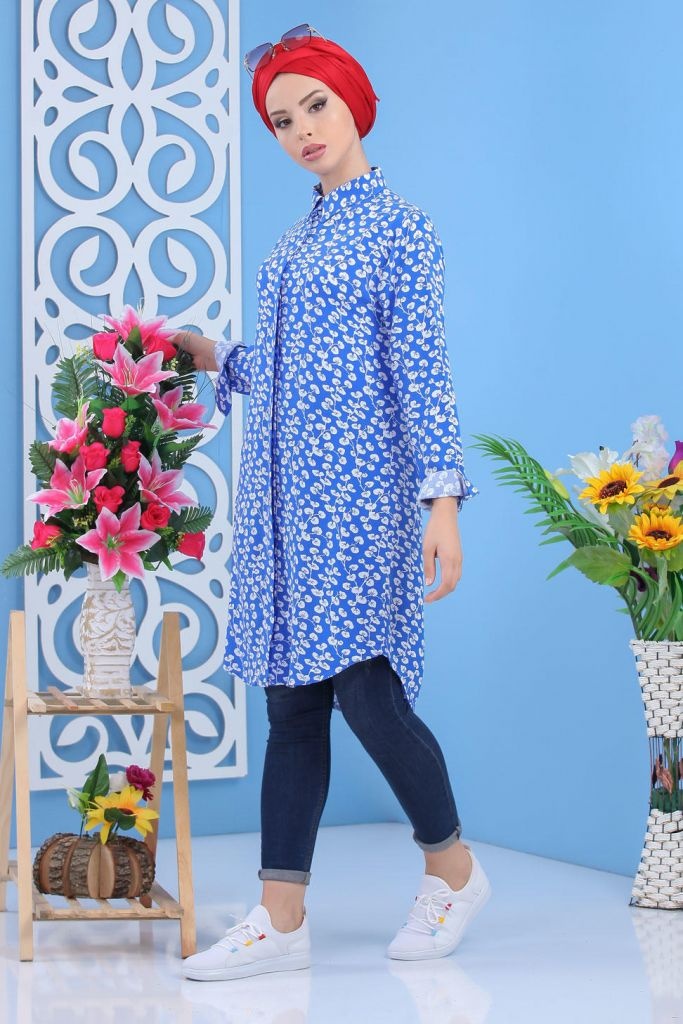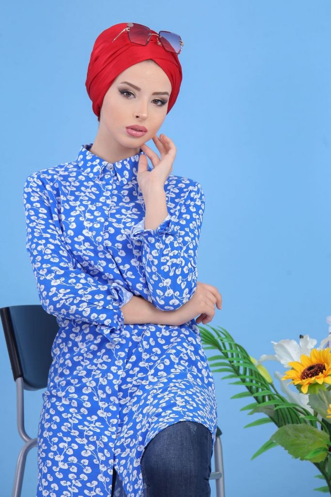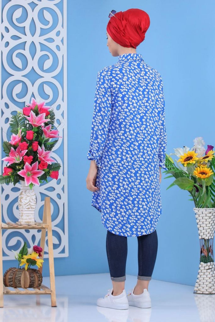 Chemise Longue à motifs (100% coton) pour femme - Couleur bleue Vetement & Accessoire