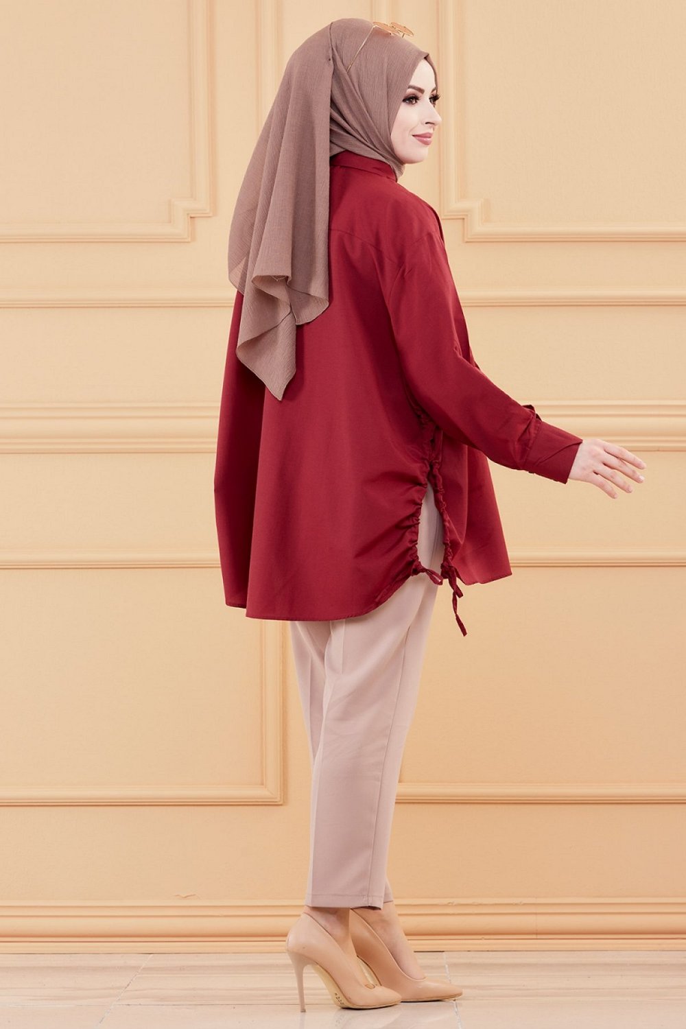 Chemise-Tunique fendue style habillé pour femme (Vêtement chic pour hijab) - Couleur bordeaux Vetement & Accessoire