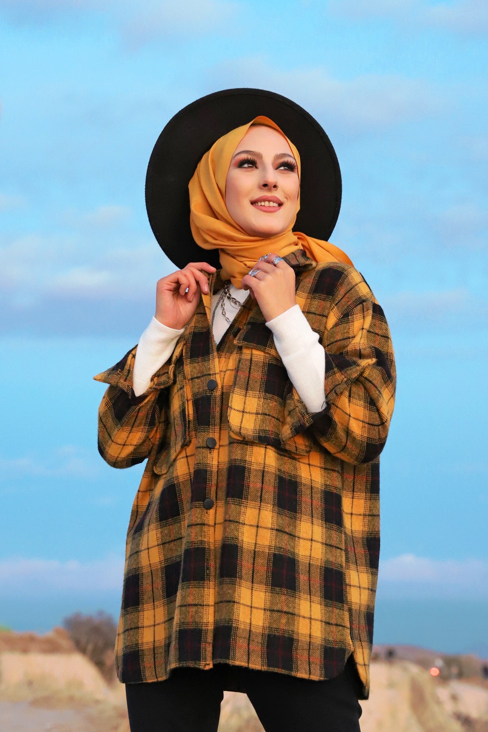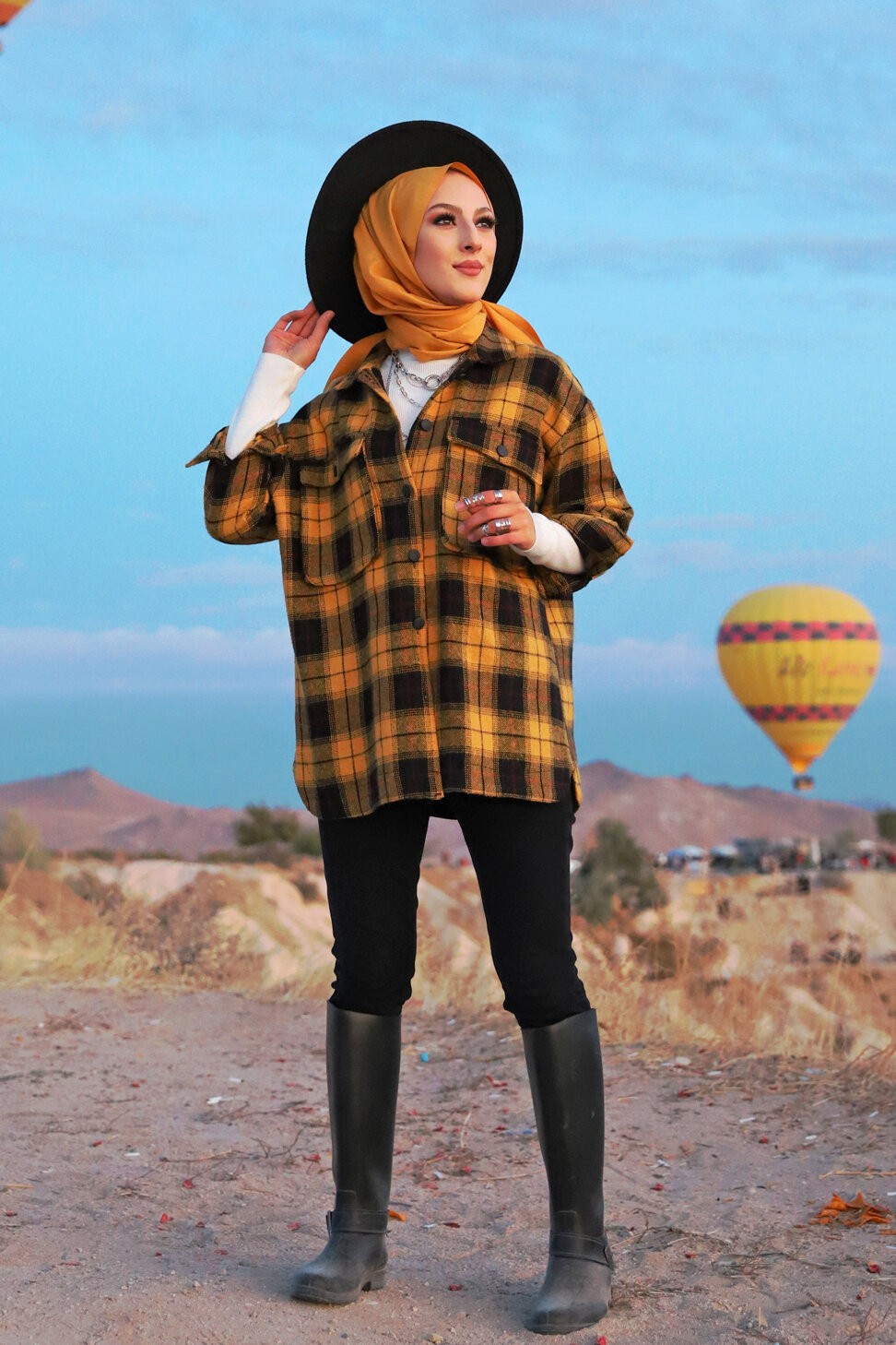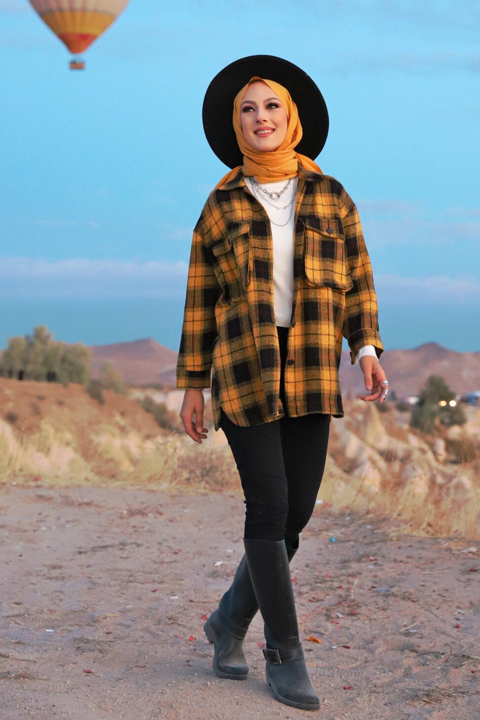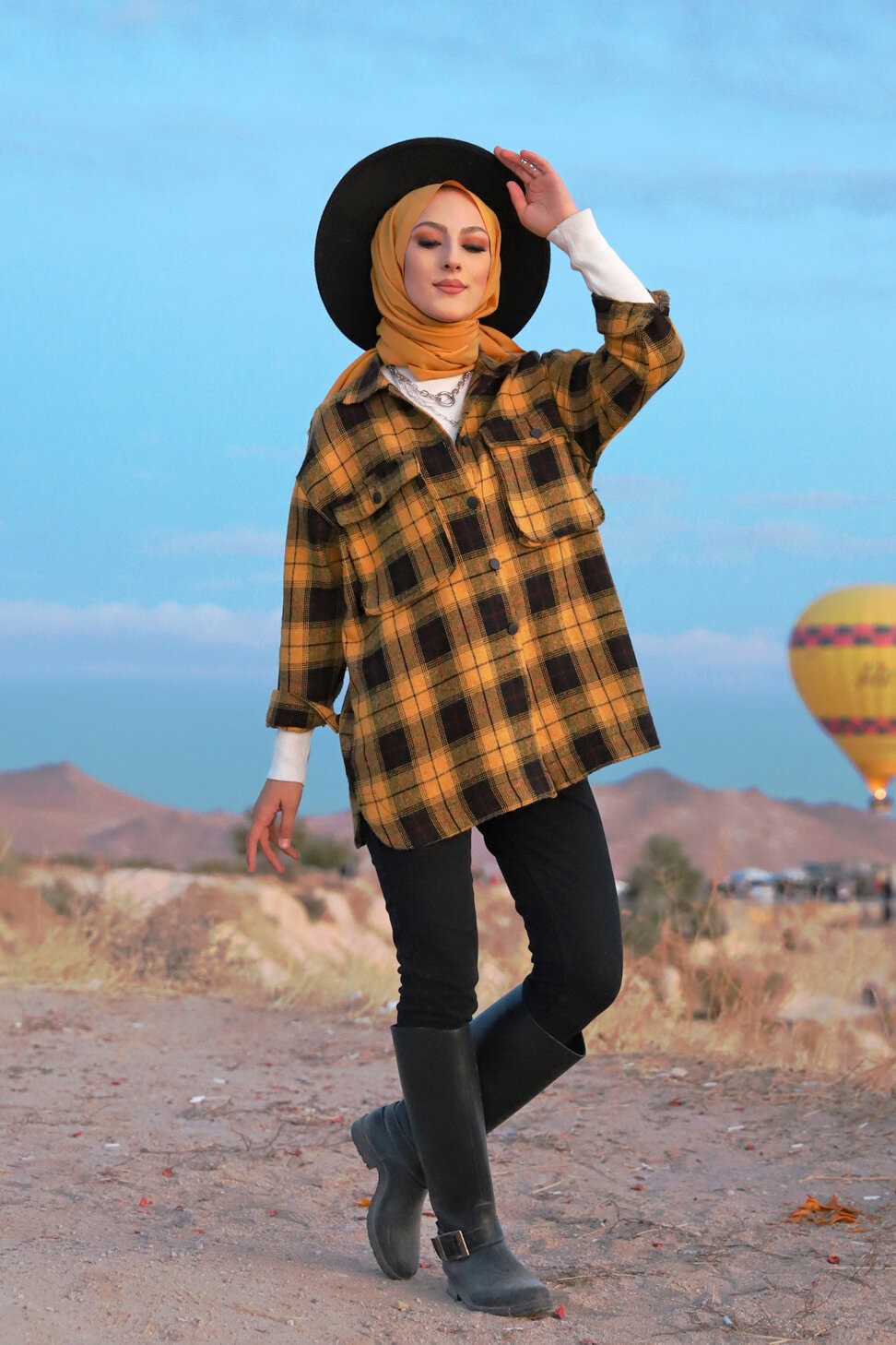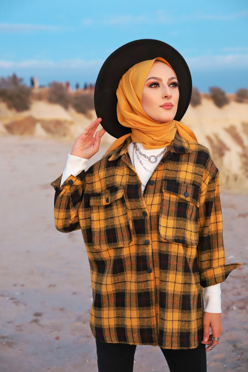 Chemise à carreaux (Boutique vêtement de Turquie pour femme) - Couleur moutarde Vetement & Accessoire