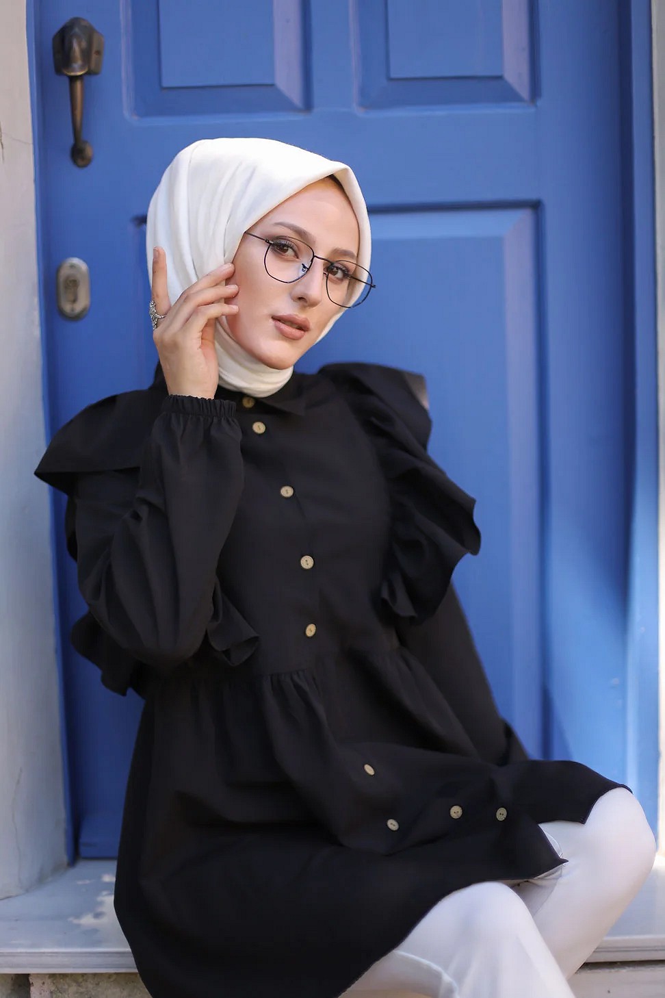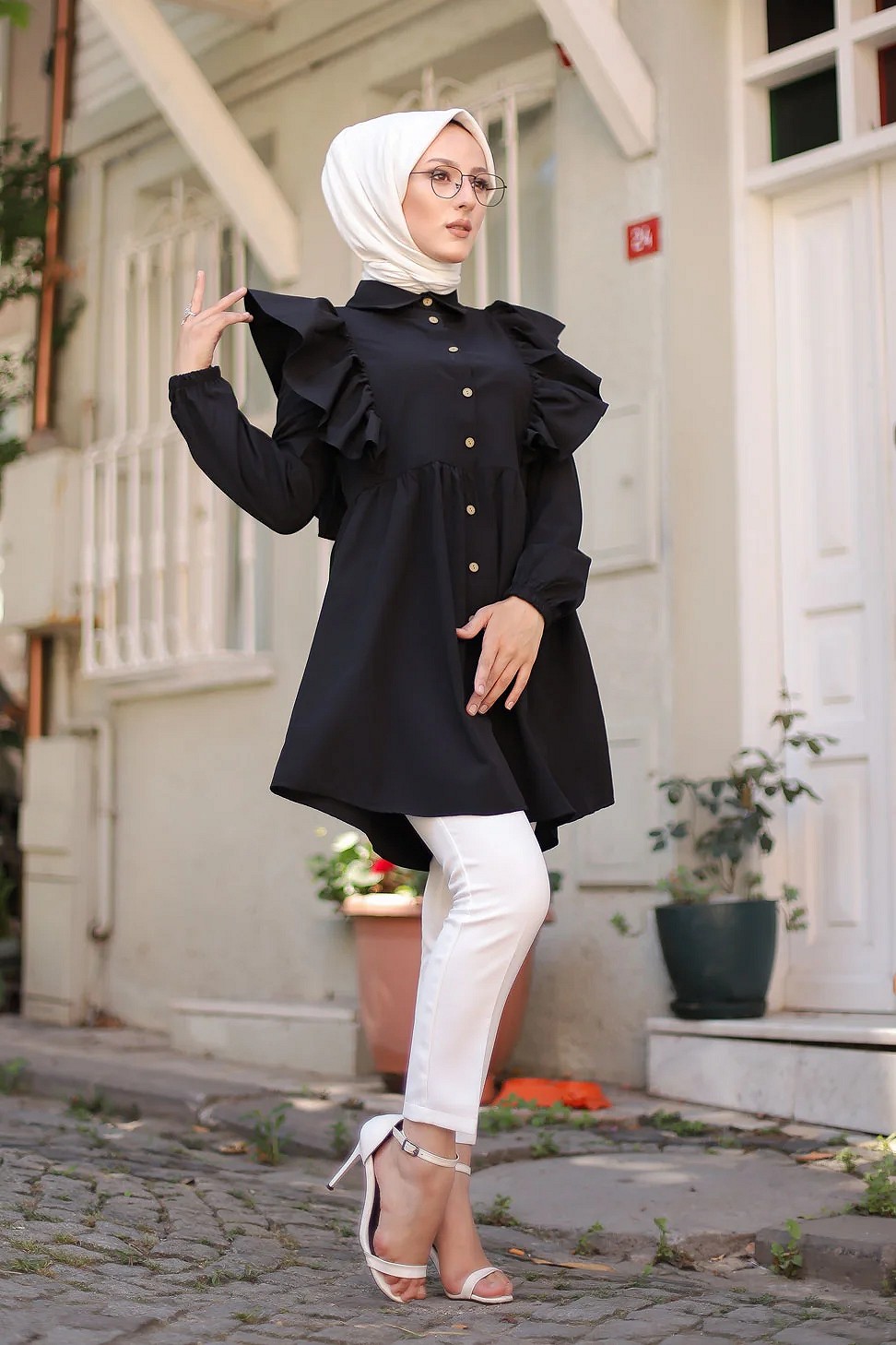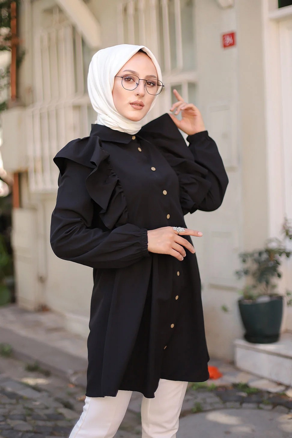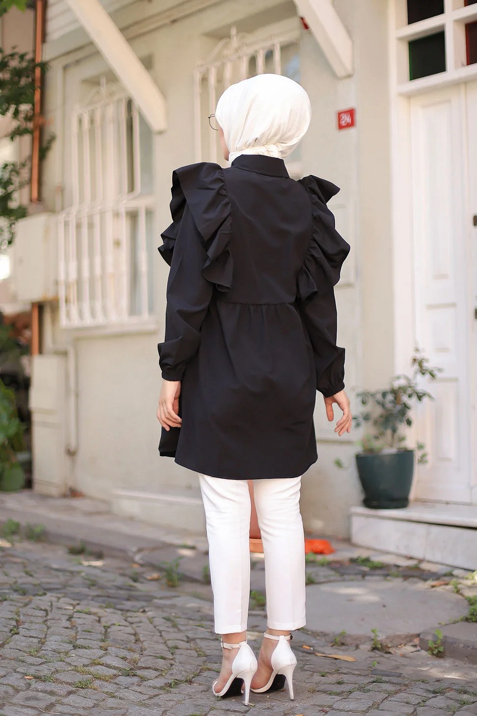 Chemise a froufrou (Vetement femme musulmane chic) - Couleur noir