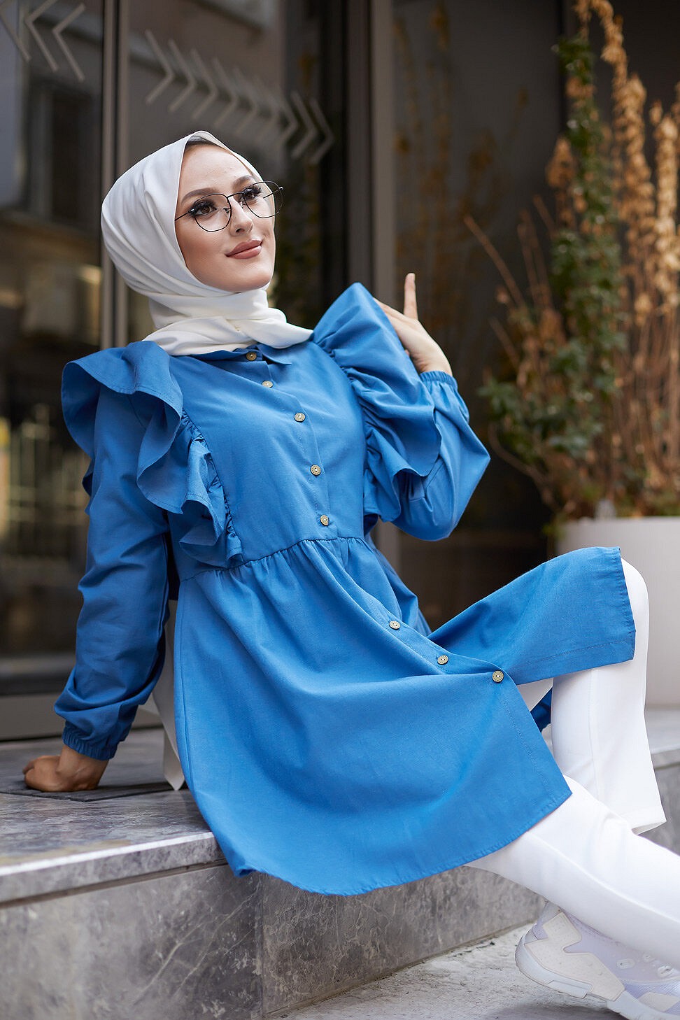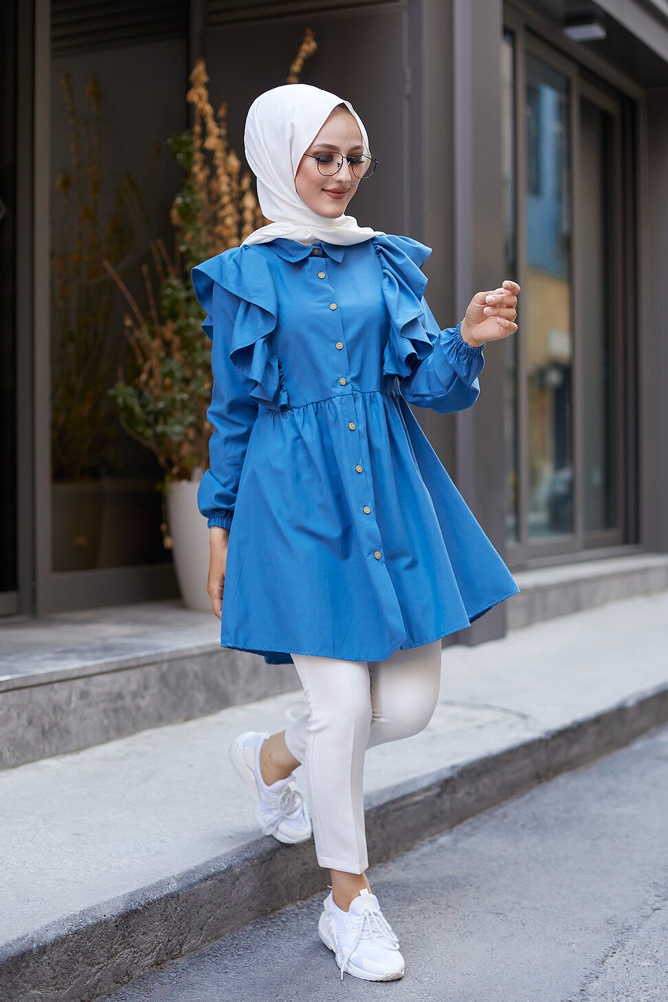 Chemise à froufrou (Vetement femme voilée en ligne) - Couleur bleu pétrole Vetement & Accessoire