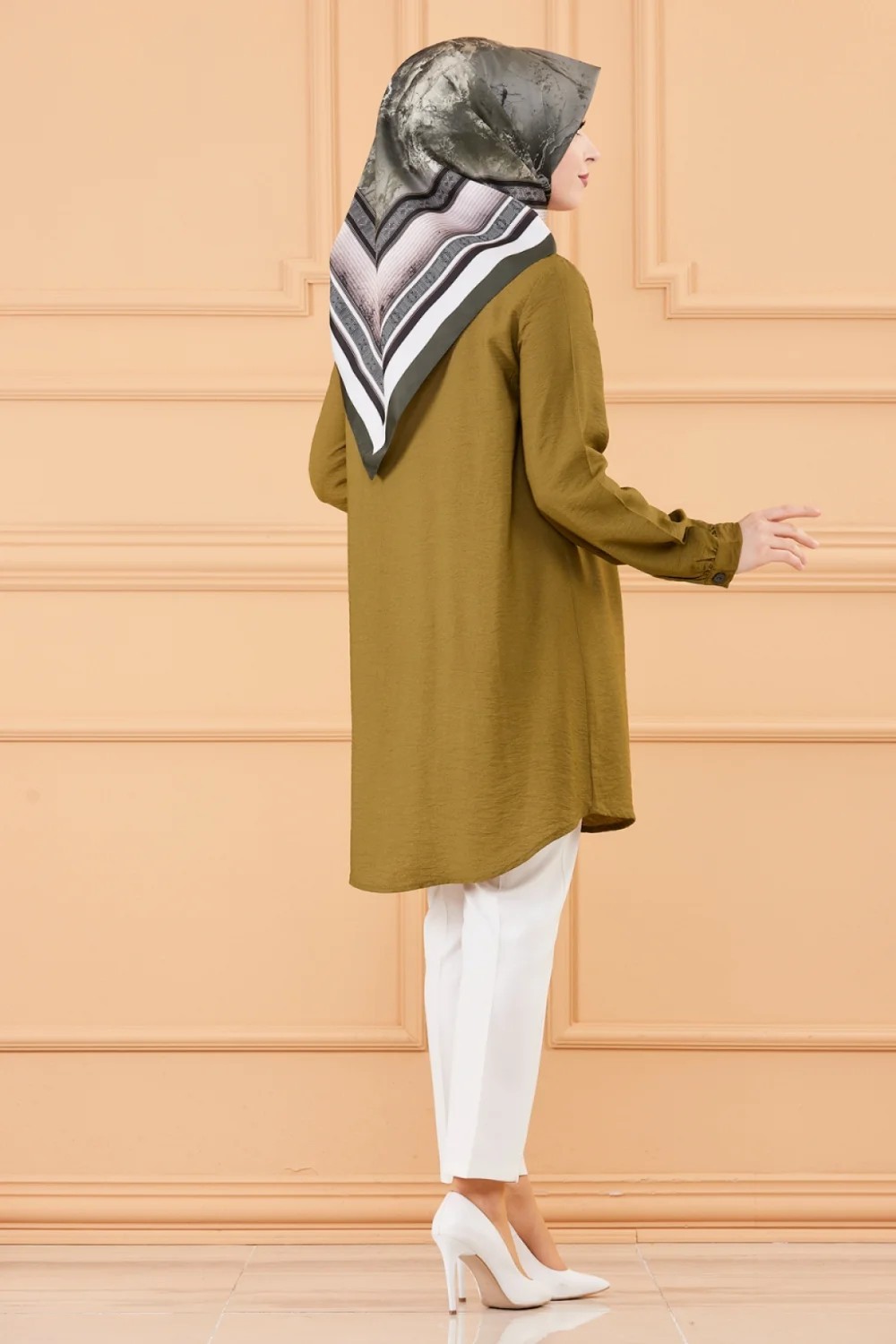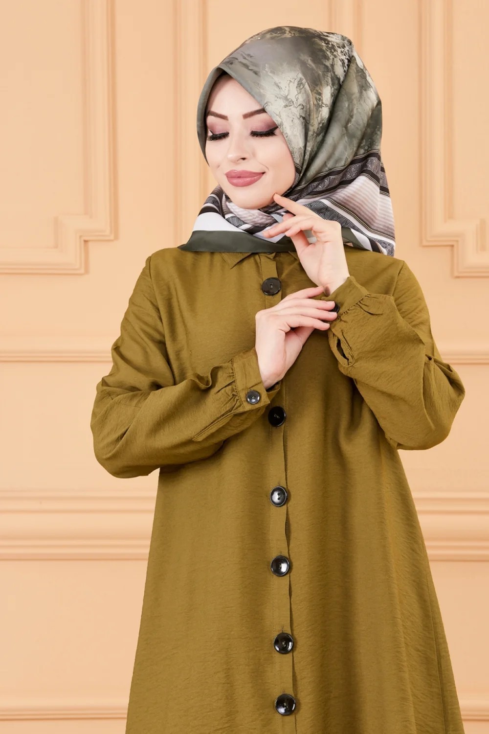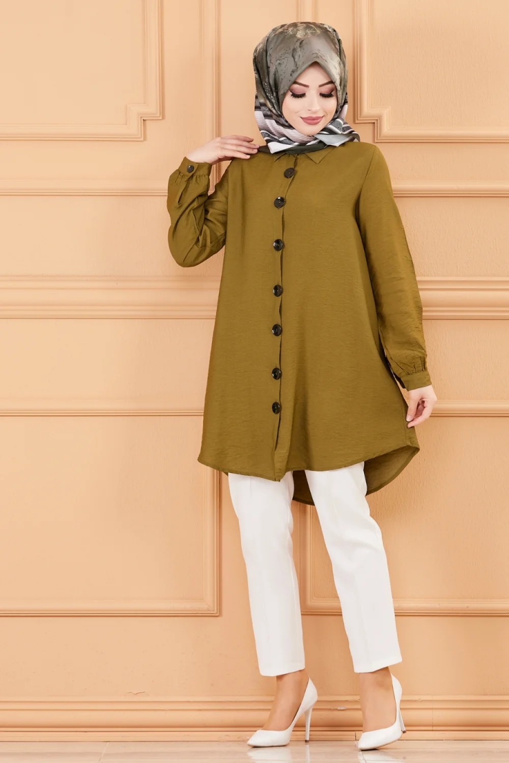 Chemise a gros boutons (Tunique style habille pour hijab) - Couleur kaki fonce