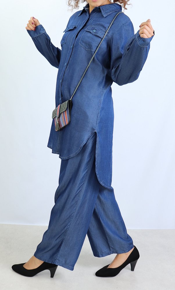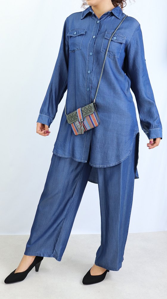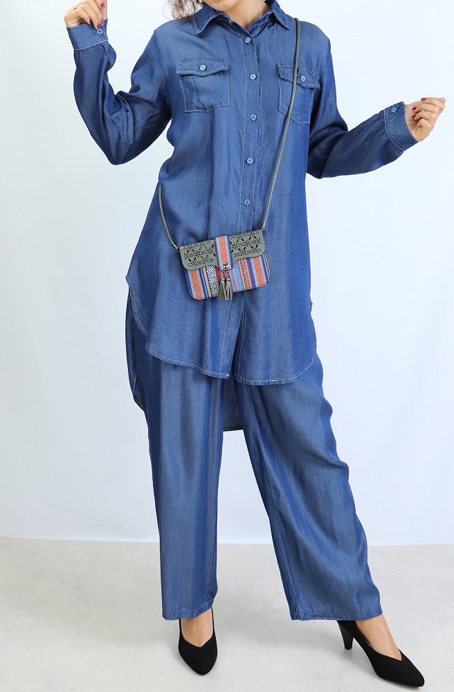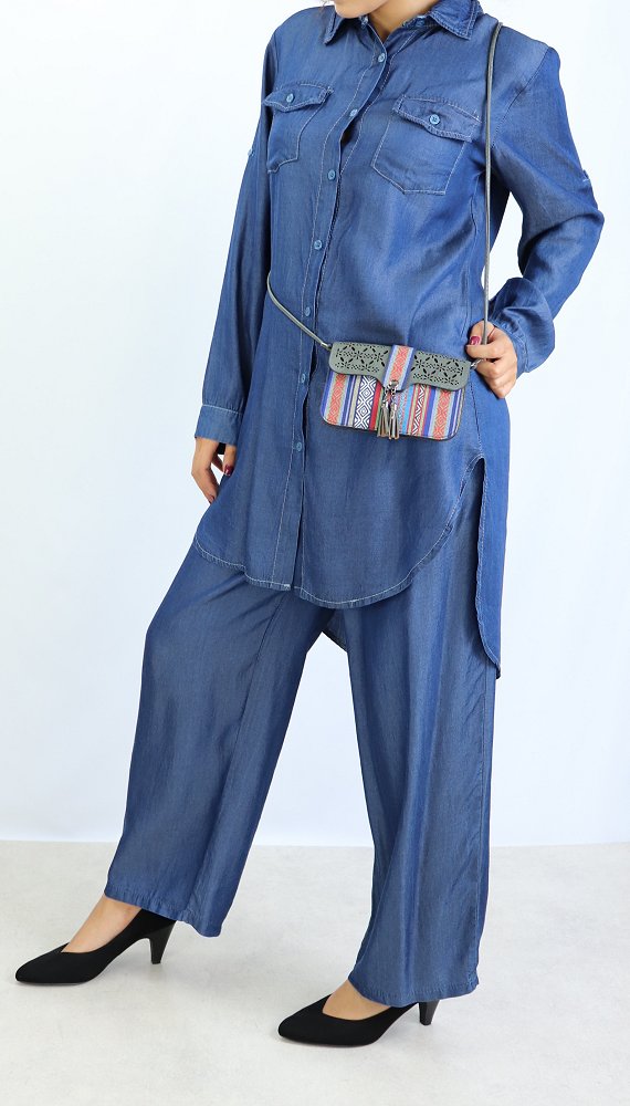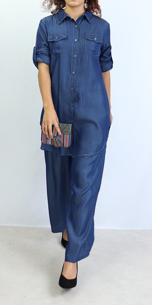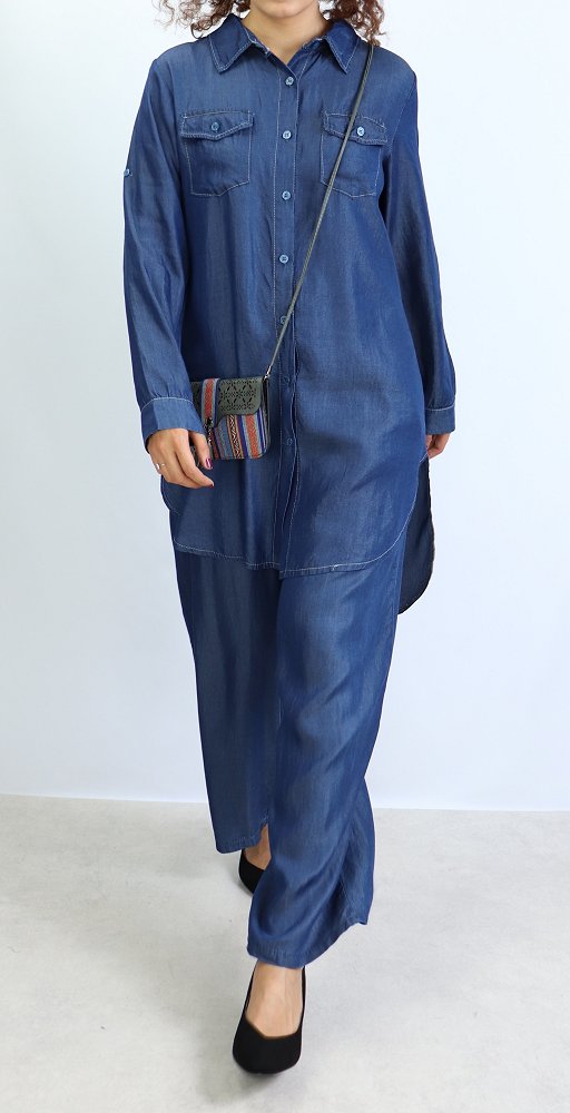 Chemise ample décontractée avec fermeture boutons et poches à rabat sur le devant, manches retroussables. Tissu très agréable à porter en toutes saisons.