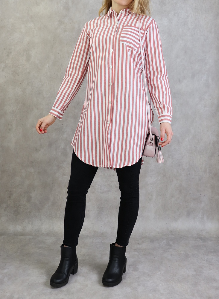 Tunique chemise boutonnée habillée pour femme (Tenue Hijab classique) - Couleur rouille - REF. 36343 (29.00 €)