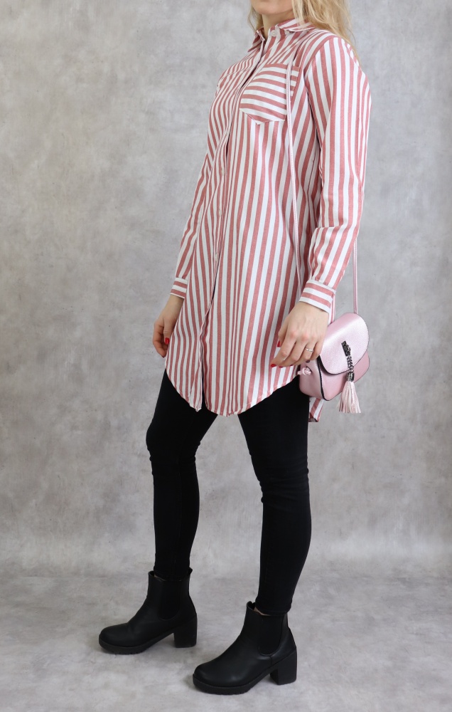 Tunique boutonnée avec ceinture - Couleur rose avec motifs - REF. 28624 (26.00 €)