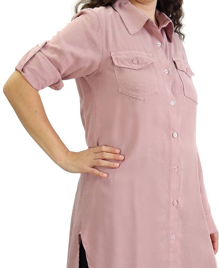 Chemise ample décontractée avec fermeture boutons et poches à rabat sur le devant, manches retroussables. Tissu très agréable à porter en toutes saisons.