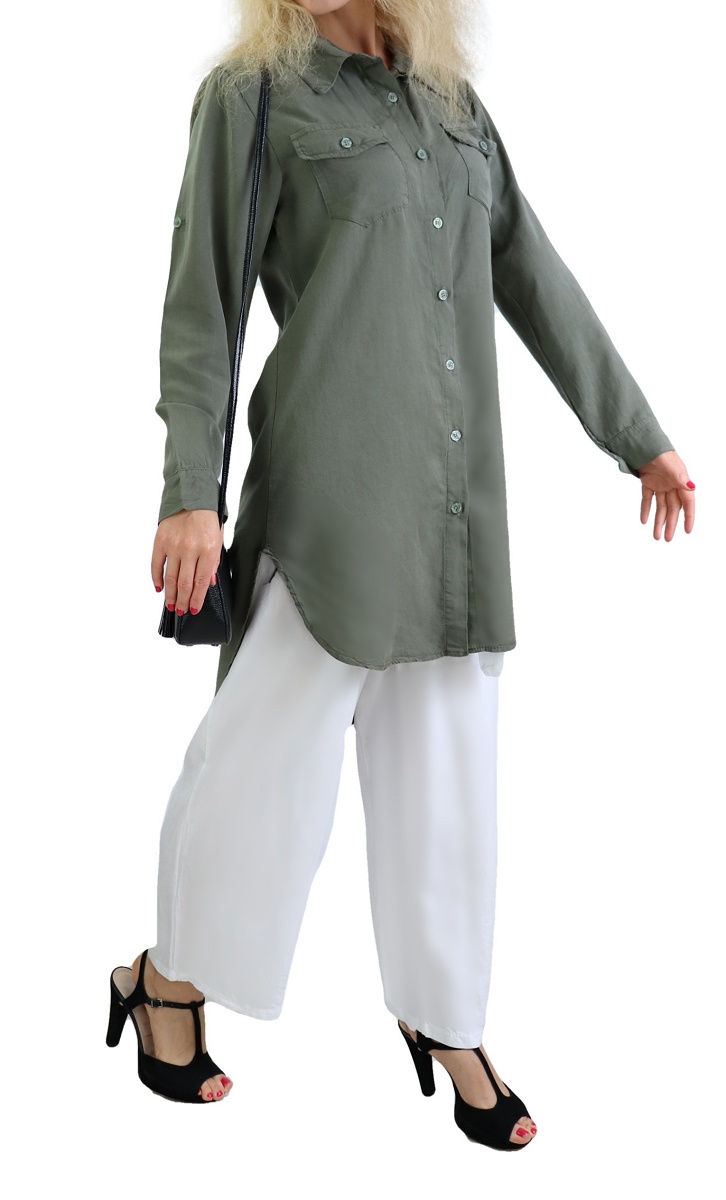 Chemise longue et ample pour femme (Vetement large pour hijab) - Couleur kaki - REF. 35091 (28.00 €) - En Promotion à 19.90 €