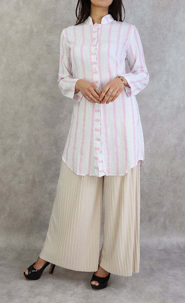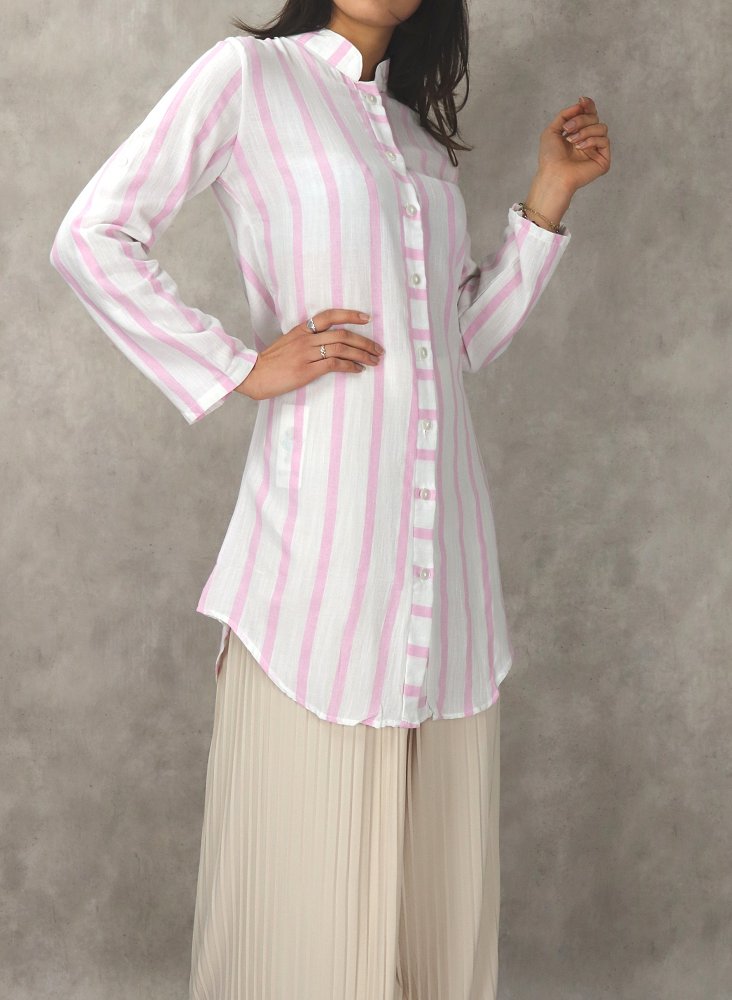 Chemise coton mi-longue à rayures de couleur Blanc et Rose Vetement & Accessoire