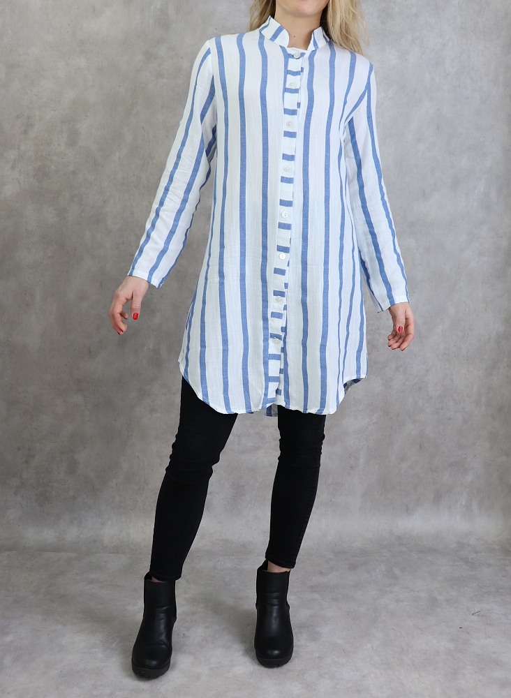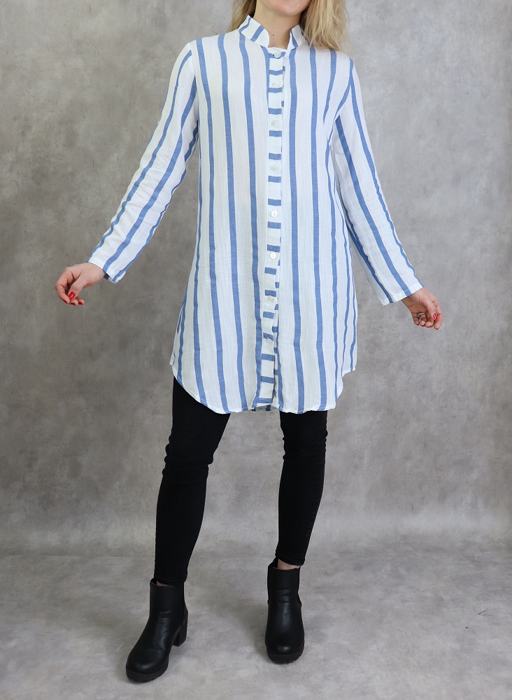 Chemise ample pour femme - Brodée à rayures bleues - REF. 30496 (19.00 €)