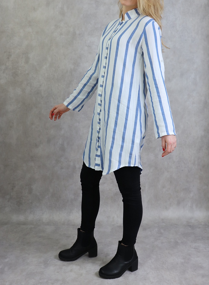 Chemise coton mi-longue à rayures de couleur blanc et bleu Vetement & Accessoire