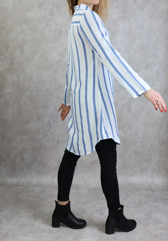 Chemise coton mi-longue a rayures de couleur blanc et bleu