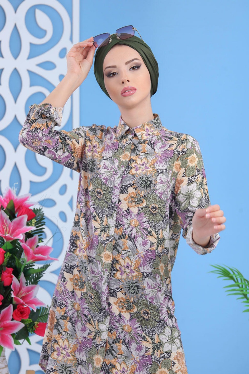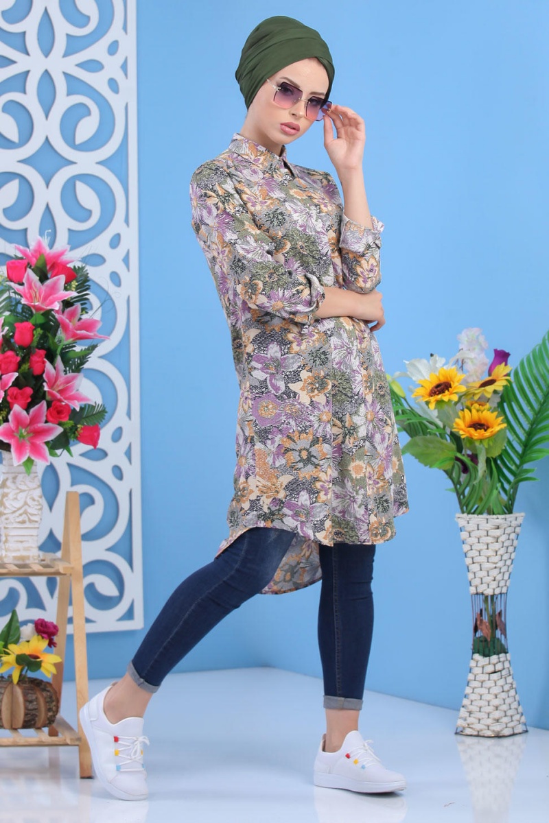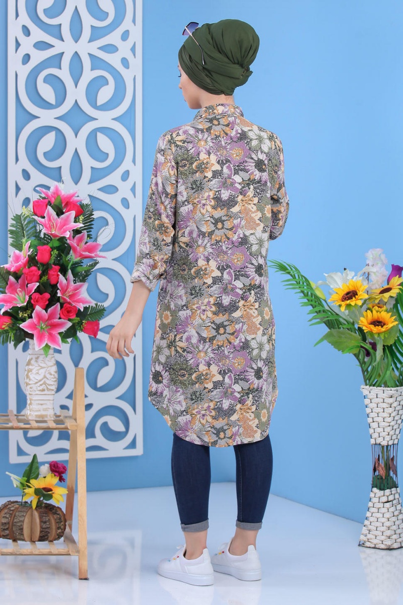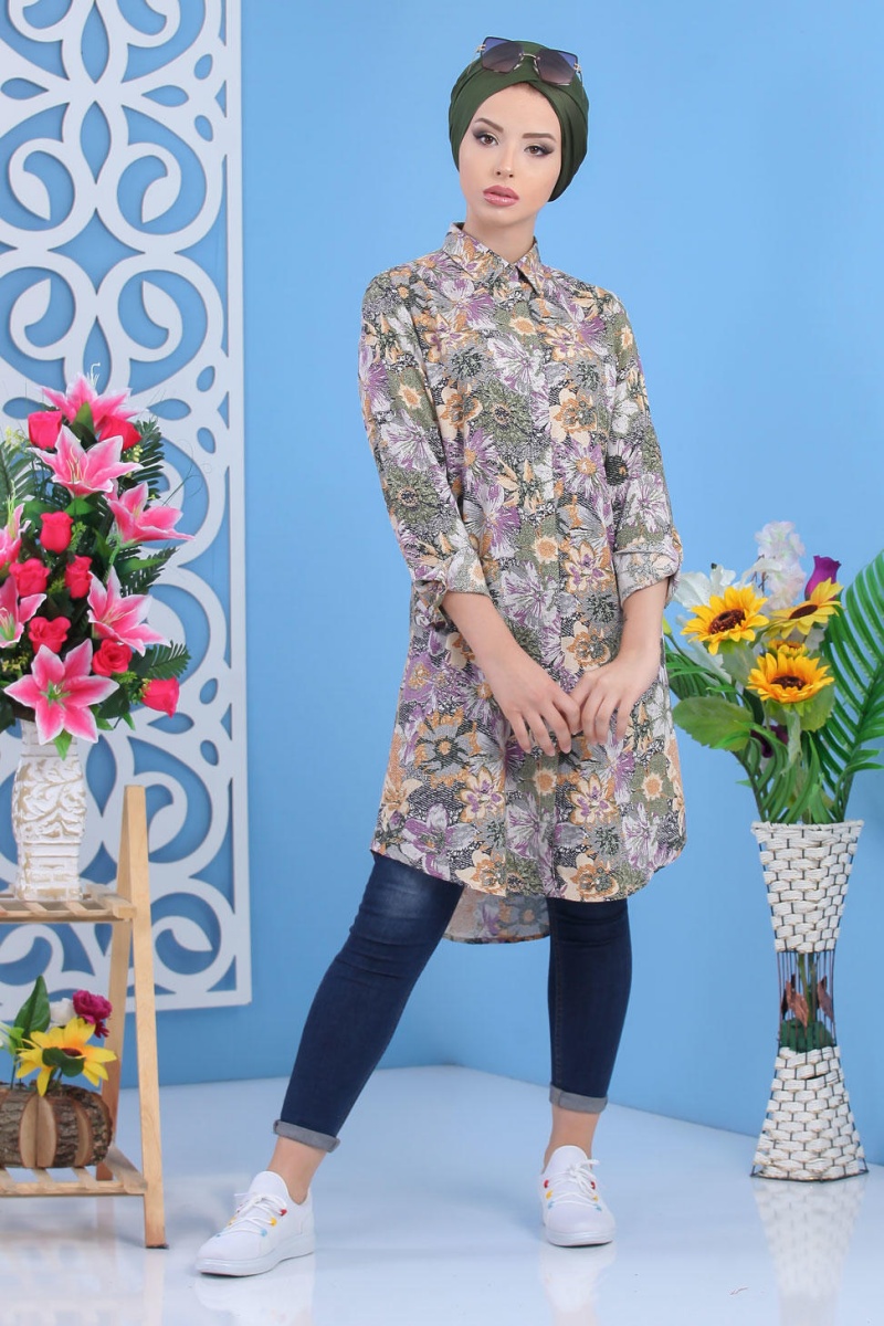 Tunique chemise longue pour femme - Couleur Kaki - REF. 30287 (25.00 €) - En Promotion à 19.90 €