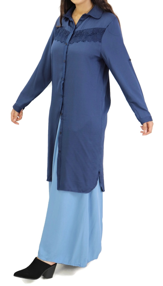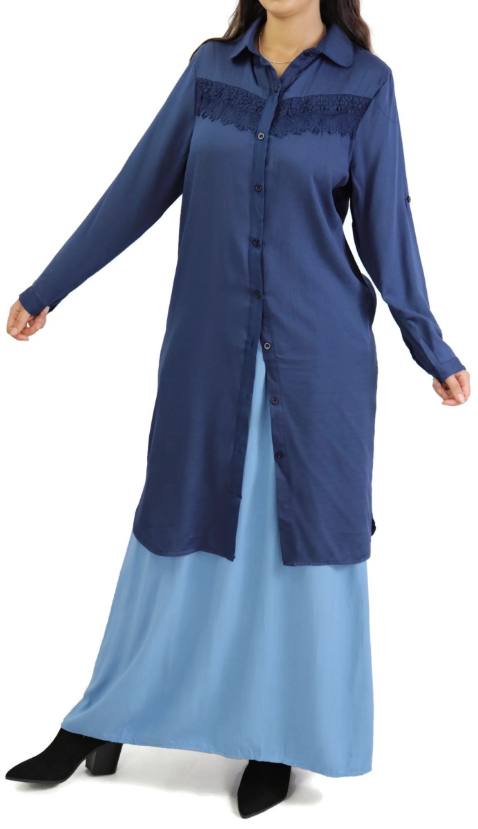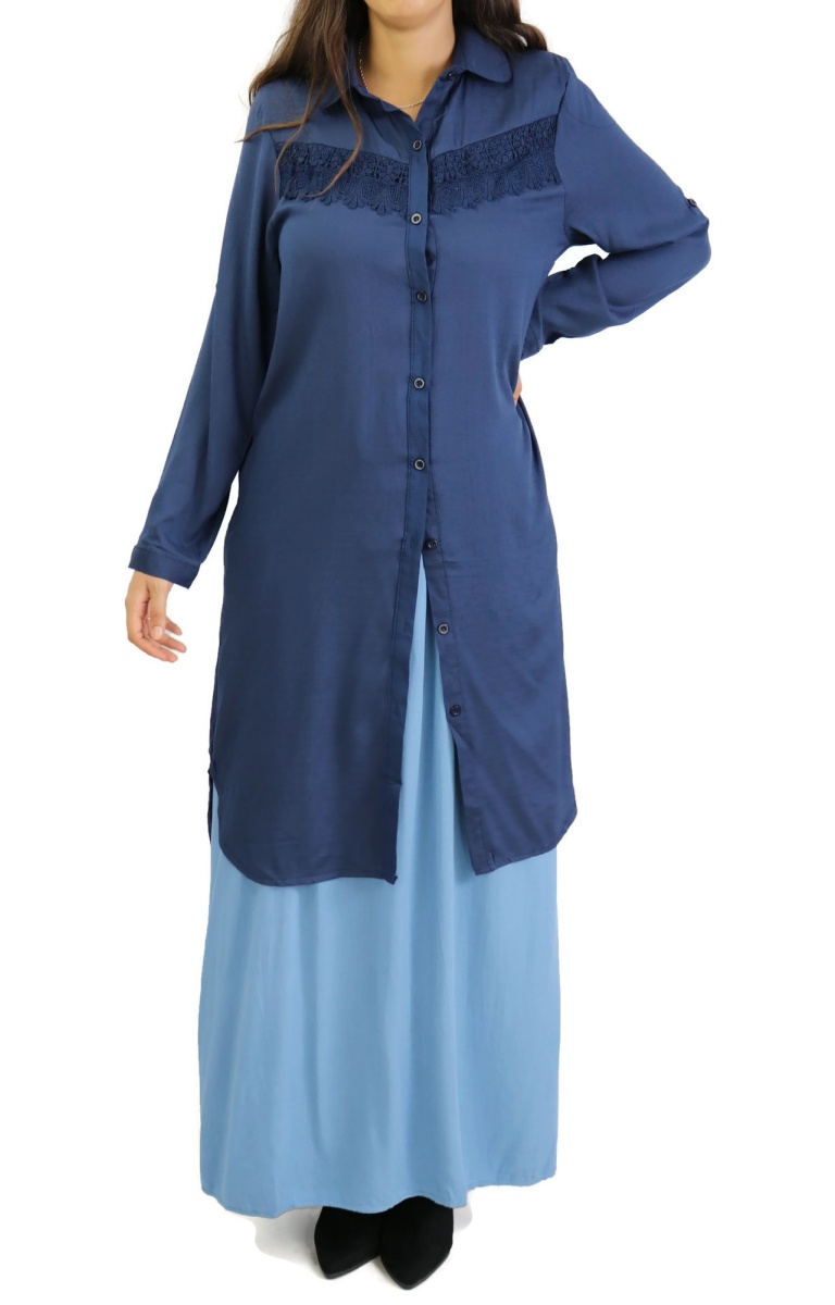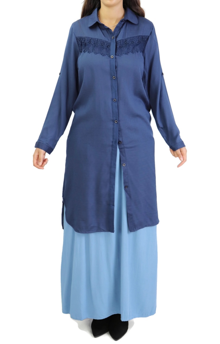 Chemise longue avec dentelles - Couleur Bleu Marine Vetement & Accessoire