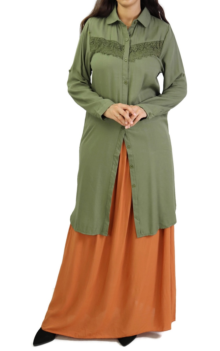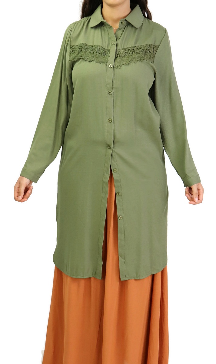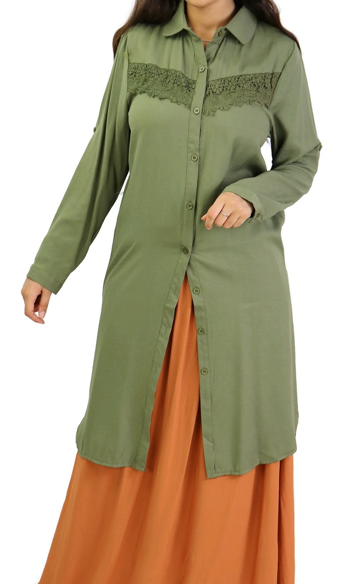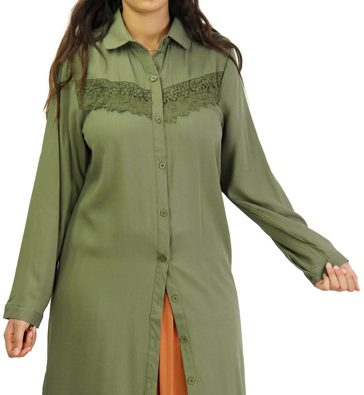 Chemise longue avec dentelles - Couleur Kaki foncé Vetement & Accessoire