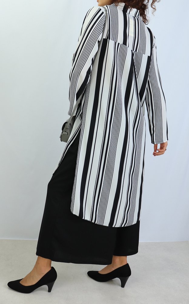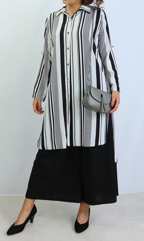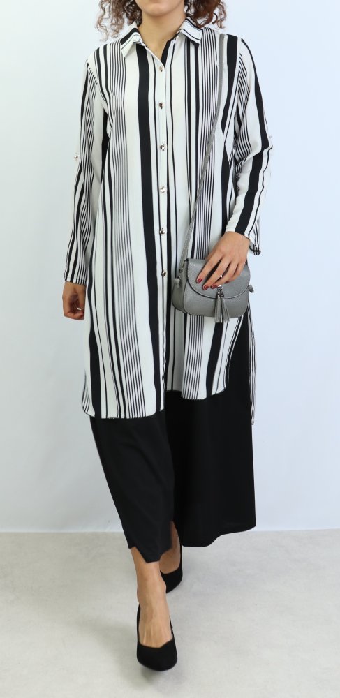 Chemise longue blanche à rayures noires Vetement & Accessoire
