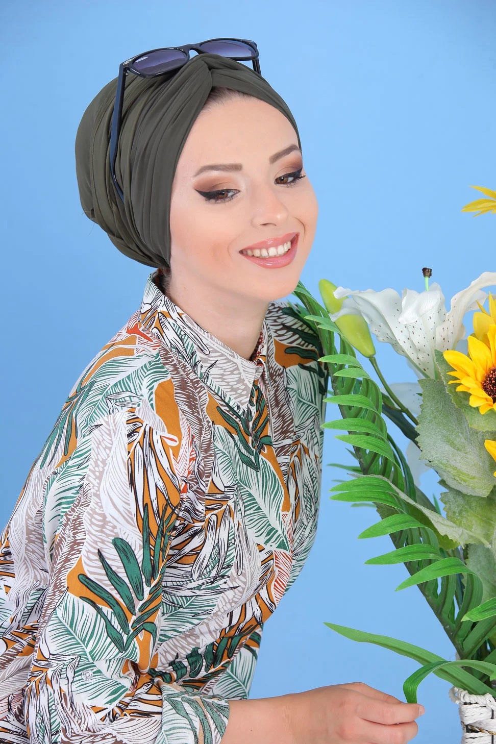 Tunique à volants (Vetement pudique pour femme musulmane) - Couleur kaki et blanc - REF. 33098 (19.90 €)