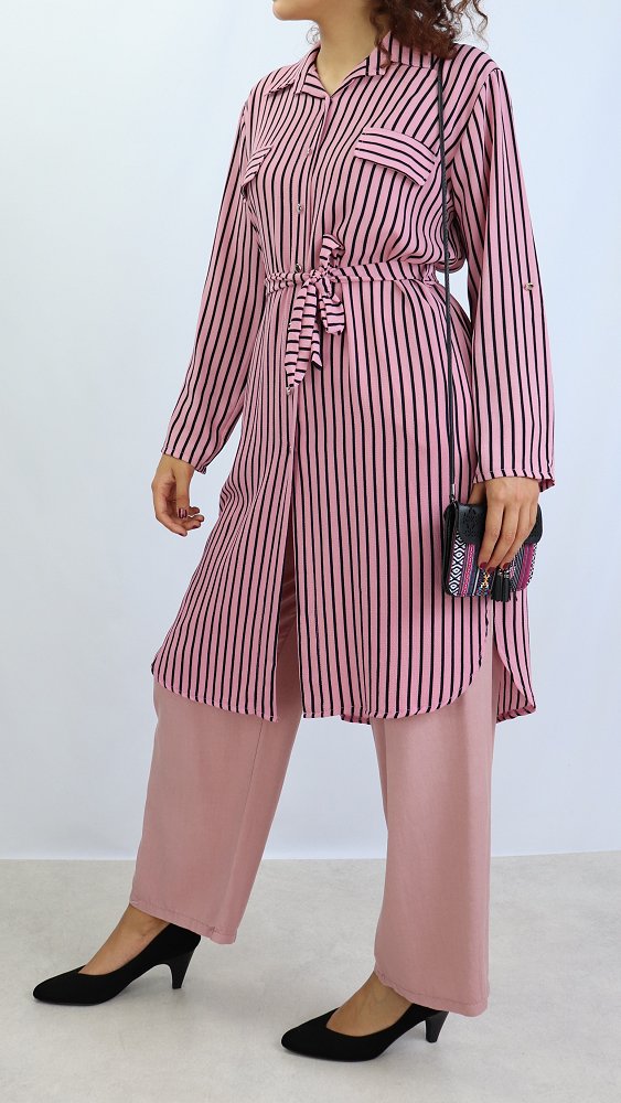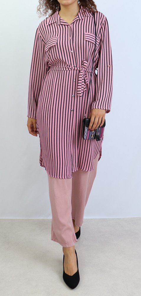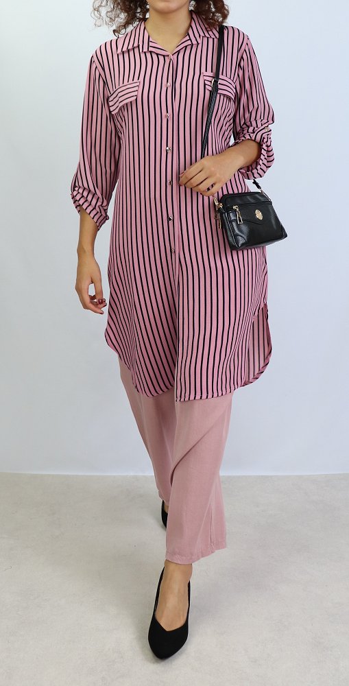 Chemise longue de couleur Rose à rayures noires Vetement & Accessoire
