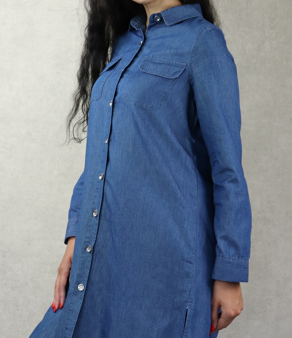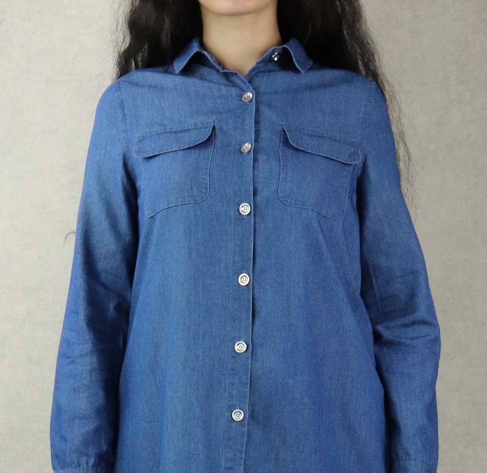 Chemise longue decontractee en denim pour femme - Couleur bleu