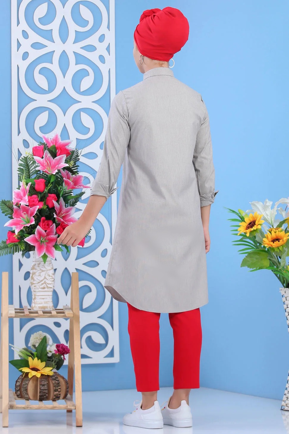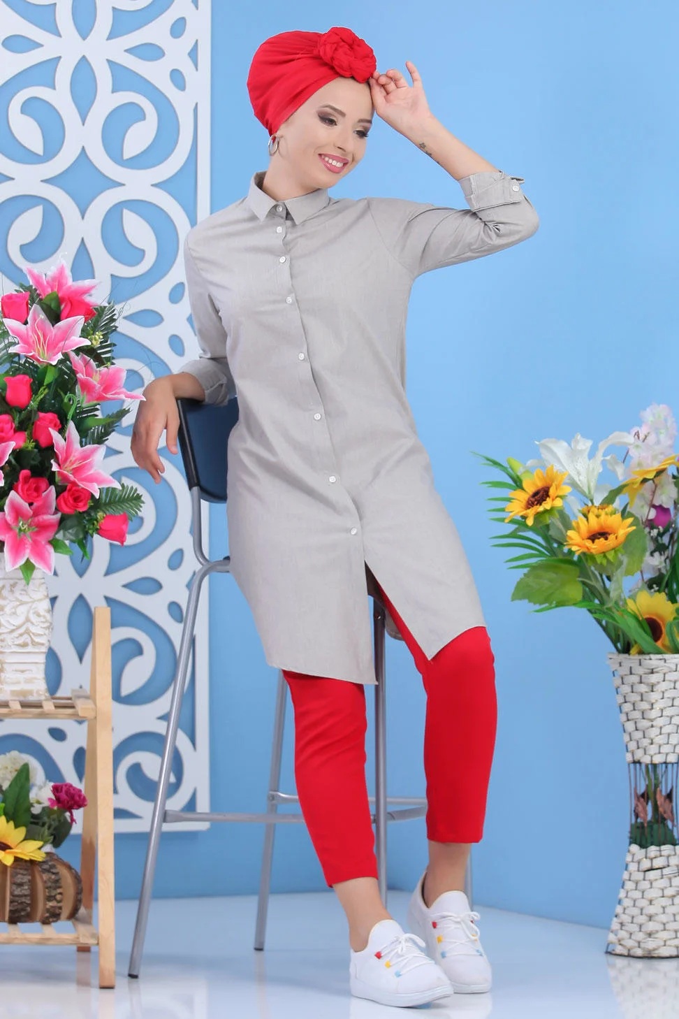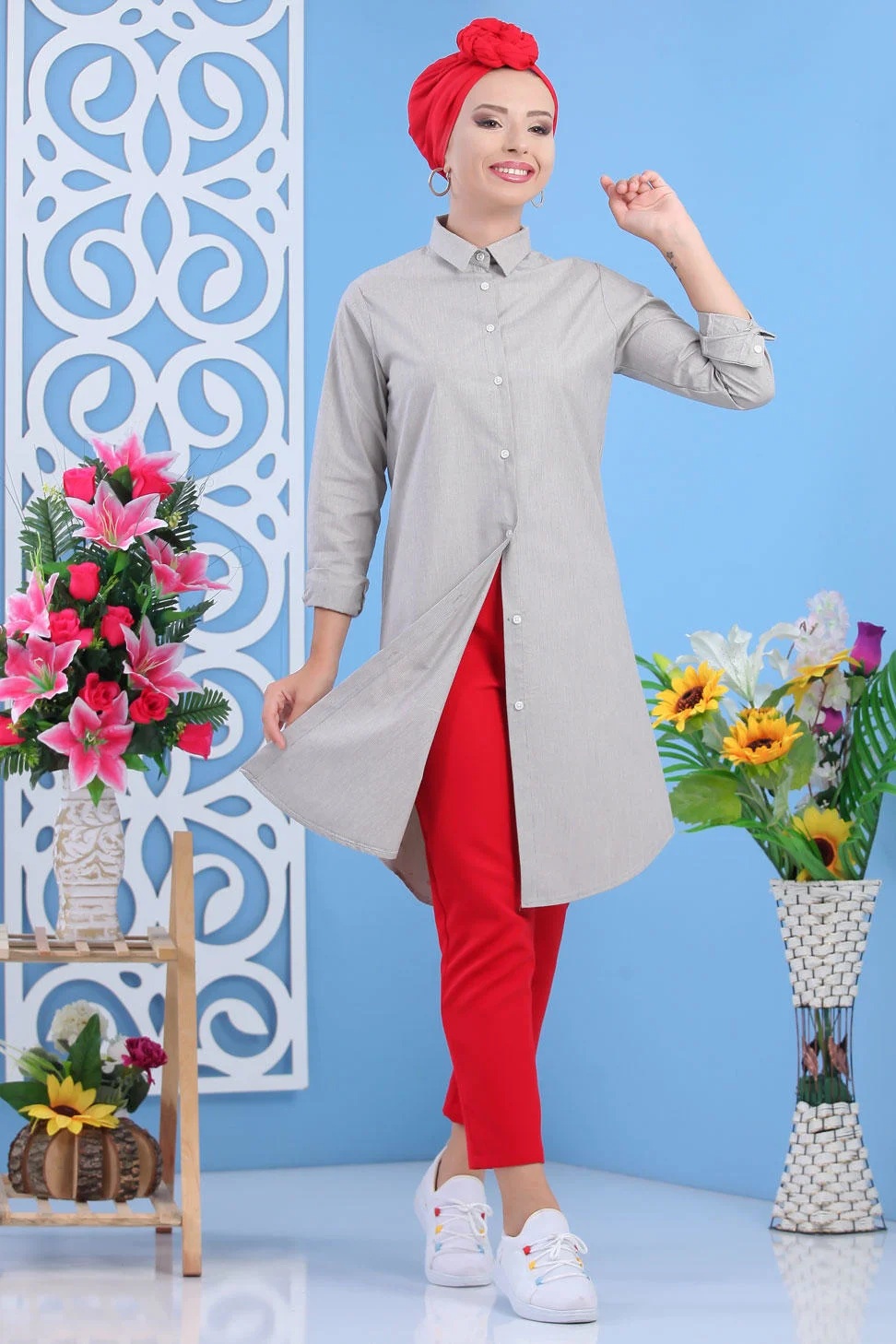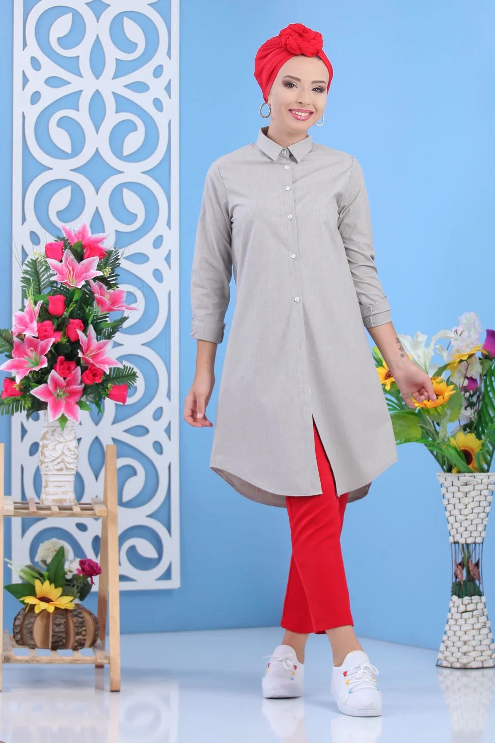 Tunique type sweat long à capuche (Vêtement moderne décontracté pour Hijab) - Couleur gris - REF. 35423 (22.00 €) - En Promotion à 16.90 €