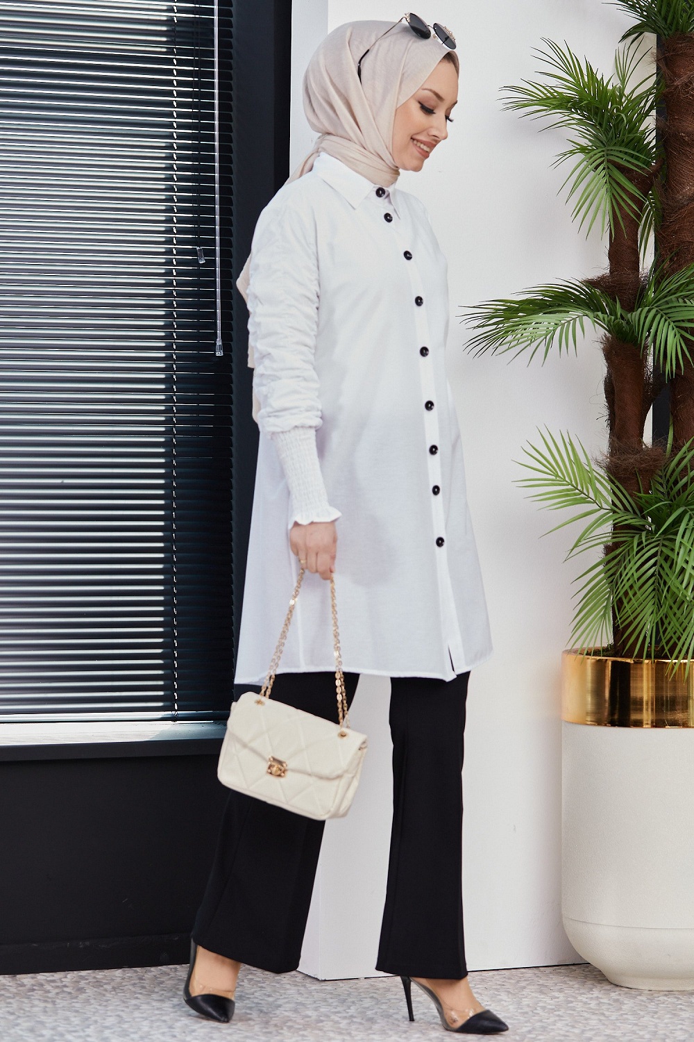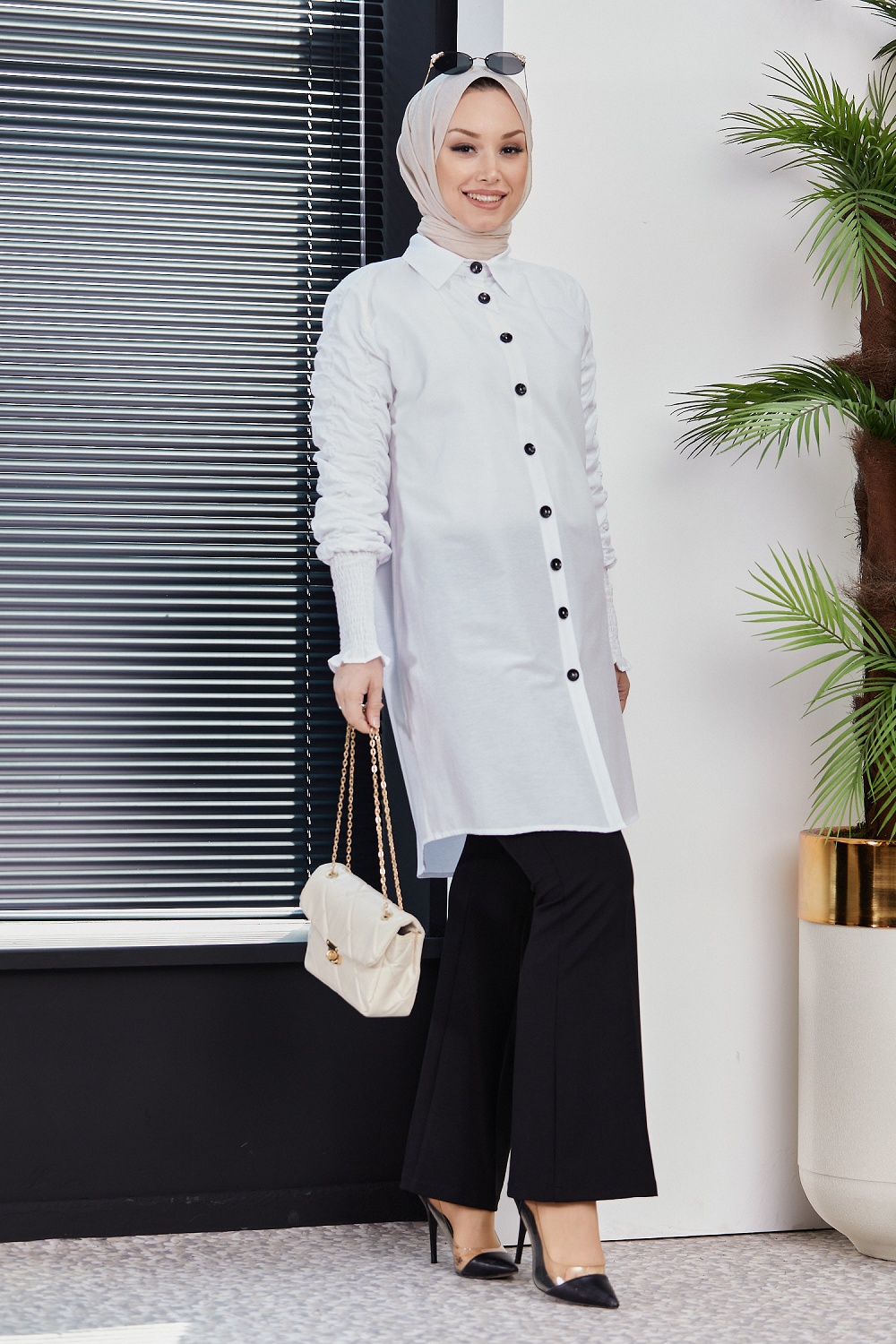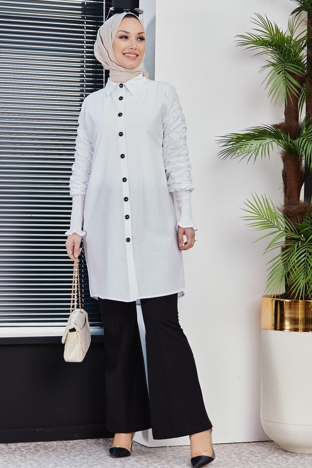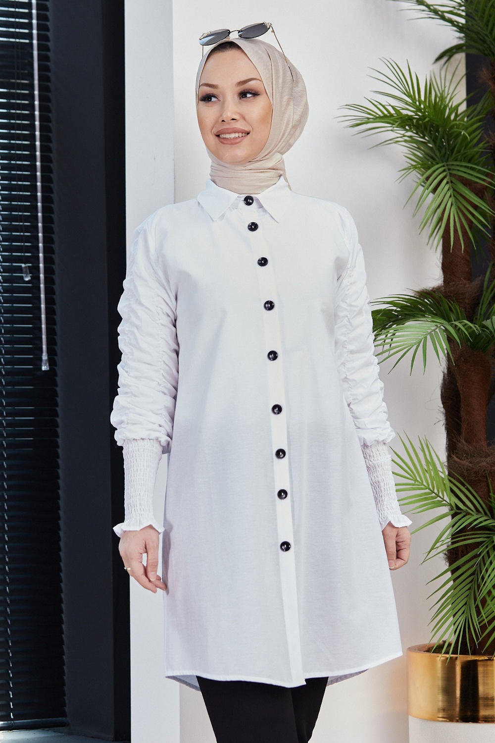 Chemise manches plissées à l'élastique (Boutique musulmane de Vêtement Hijab) - Couleur blanc Vetement & Accessoire