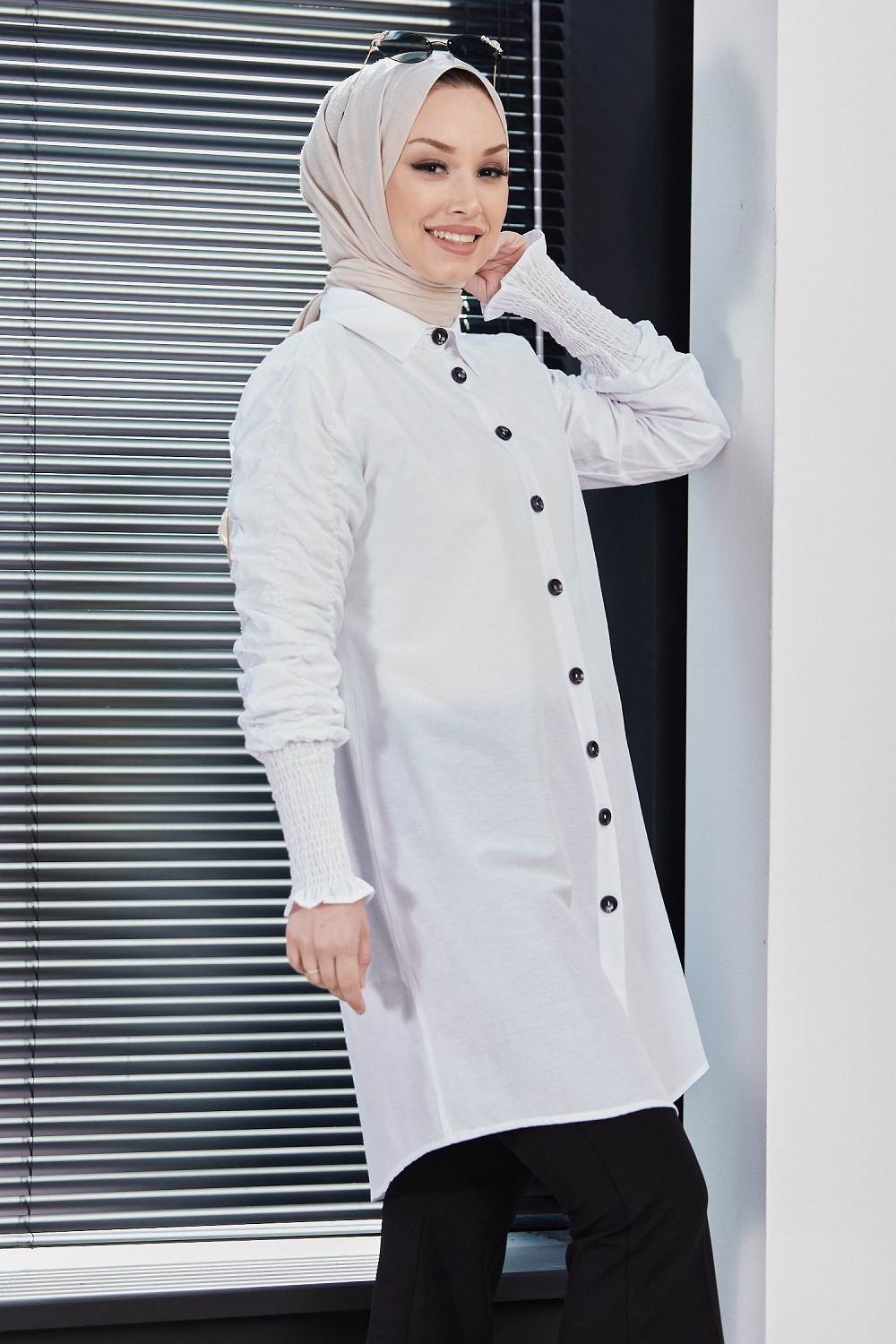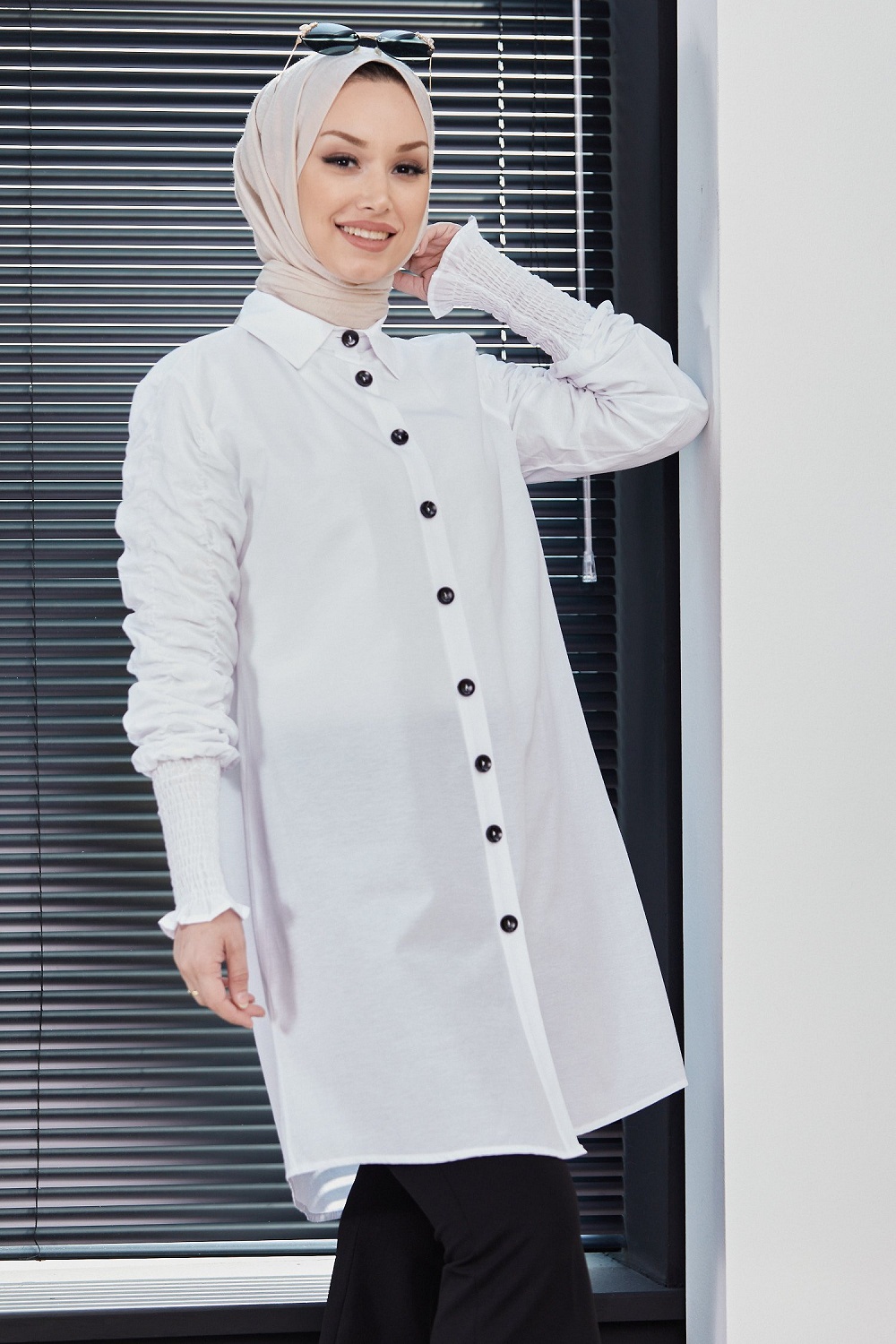 Chemise manches plissees a l'elastique (Boutique musulmane de Vetement Hijab) - Couleur blanc
