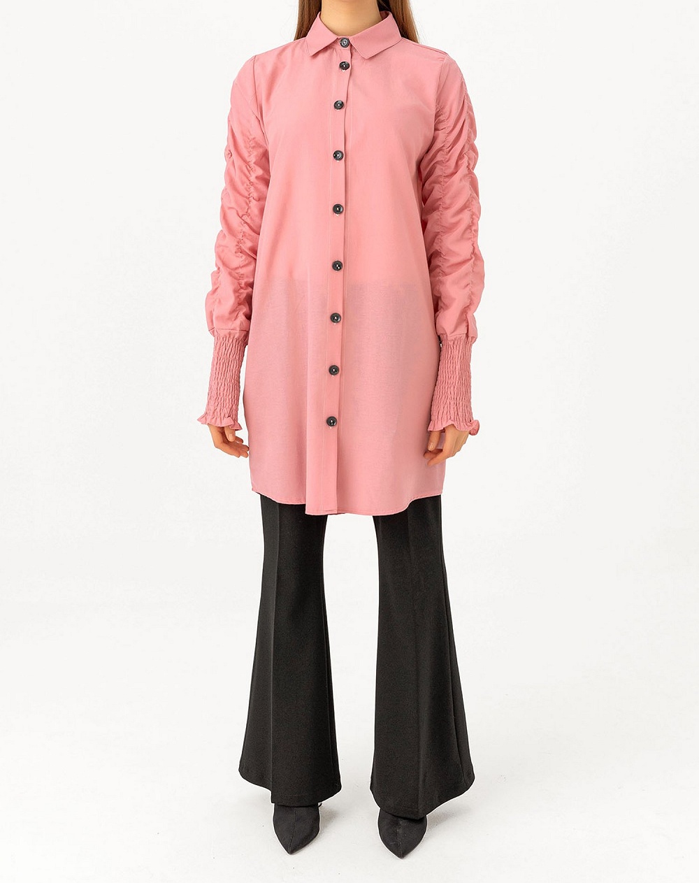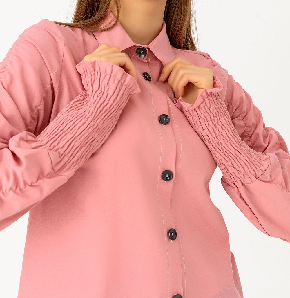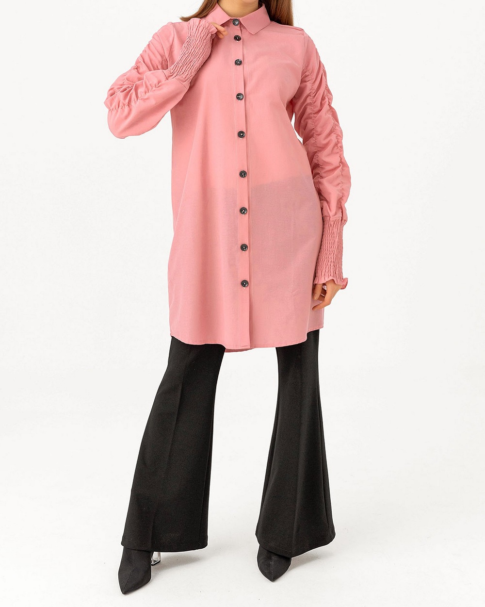 Chemise manches plissees a l'elastique pour femme - Couleur vieux rose