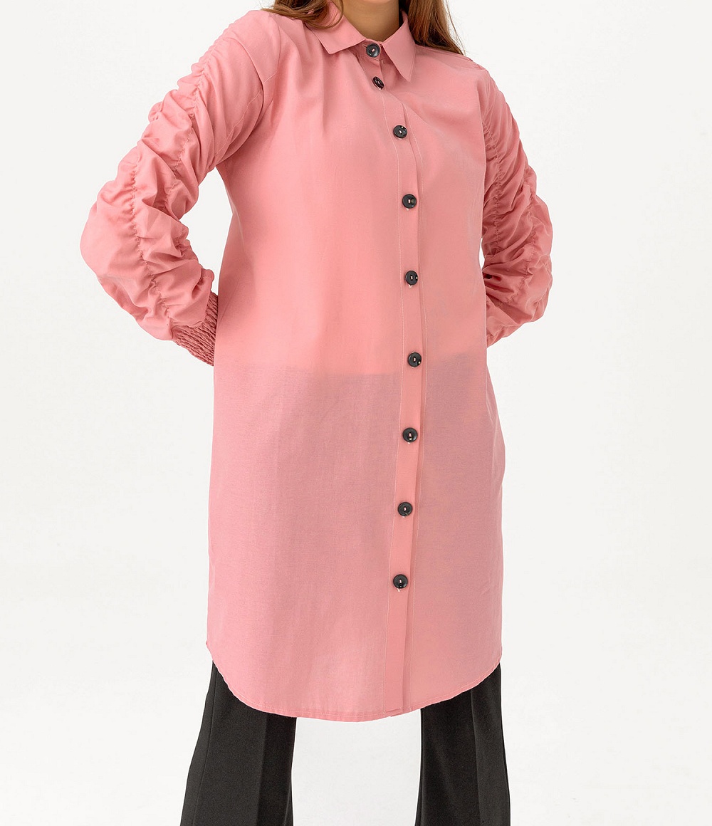 Tunique ample évasée boutonnée pour femme (Modest Fashion) - Couleur rose - REF. 33819 (22.00 €) - En Promotion à 18.00 €