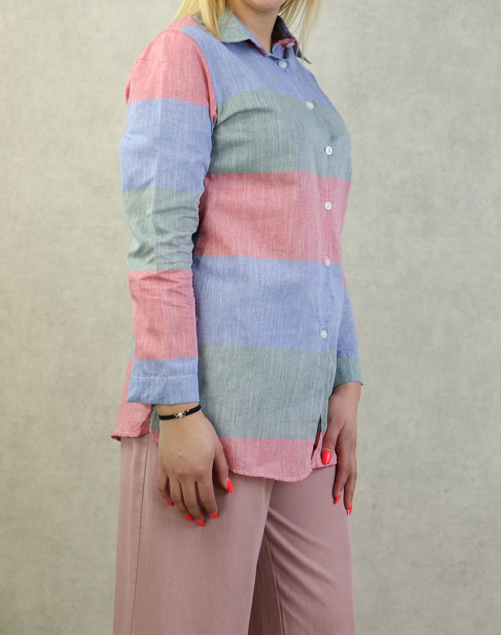 Chemise tricolore rose, bleu et blanc, ultra légère et facile à porter, manches longues avec fermeture boutons. Vous pouvez la porter avec tout type de pantalon.
