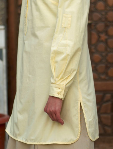 Tunique longue boutonnée (Vetement femme voilée Automne-Hiver) - Couleur noire et moutarde - REF. 32230 (25.00 €) - En Promotion à 18.00 €