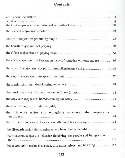 كتاب في الوعظ والارشاد مشتمل على ذكر جمل في الكبائر والمحرمات والمنهيات من الامور التي نهى الله ورسوله عنها في الكتاب والسنة والاثر عن السلف الصالحين . وقد جمع في ذلك سبعين كبيرة اولها الشرك بالله وآخرها سب احد من صحابة رسول الله صلى الله عليه وسلم