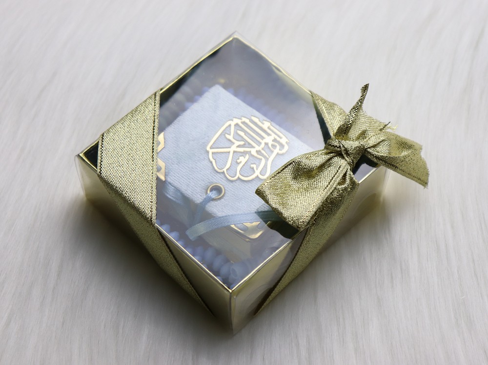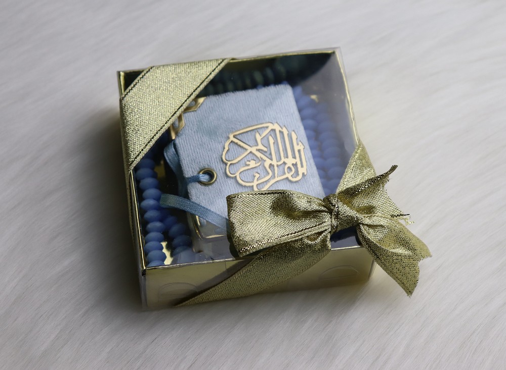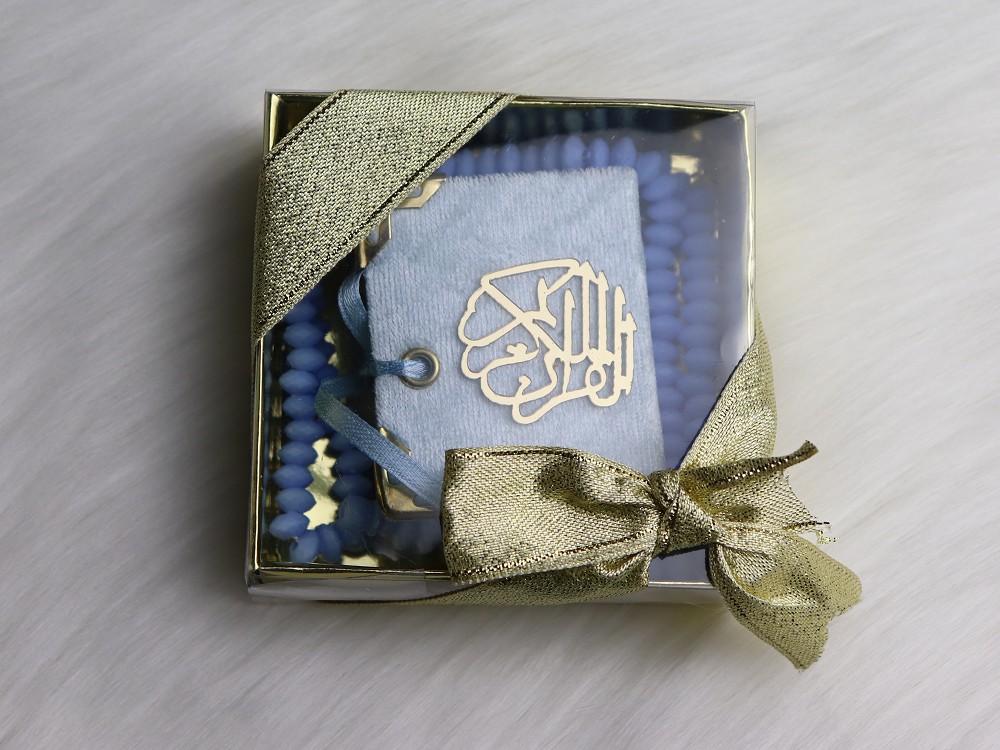 Coffret Cadeau : Mini Coran + chapelet "Sabha" - Couleur bleu clair