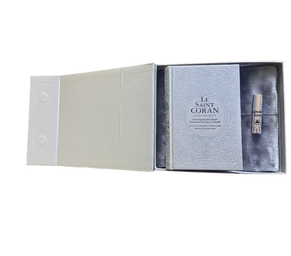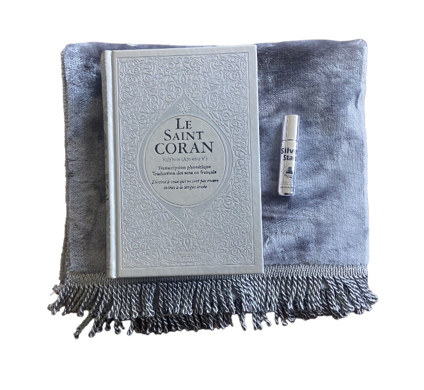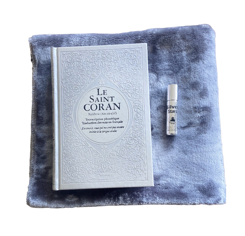 Coffret Cadeau Musulman “Paix et Lumière” en gris argenté rainbow contenant :