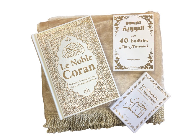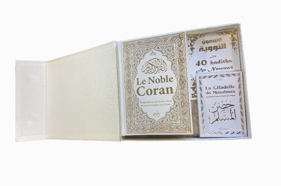 Coffret Cadeau pour femme musulmane (Coran - Tapis - Livres blanc dores) - Couleur blanc dore