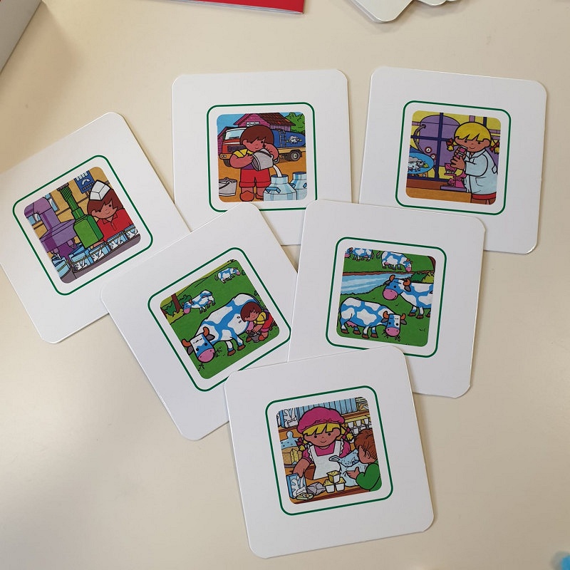 Ce coffret comprend 12 histoires à mettre dans l'ordre, réparties en 3 séries adaptées a l'age et aux centres d’intérêts des l'enfant: 4 histoires de 4 images, 4 histoires de 6 images et 4 histoires de 8 images, qui répondent à la question d’où ça vient ?