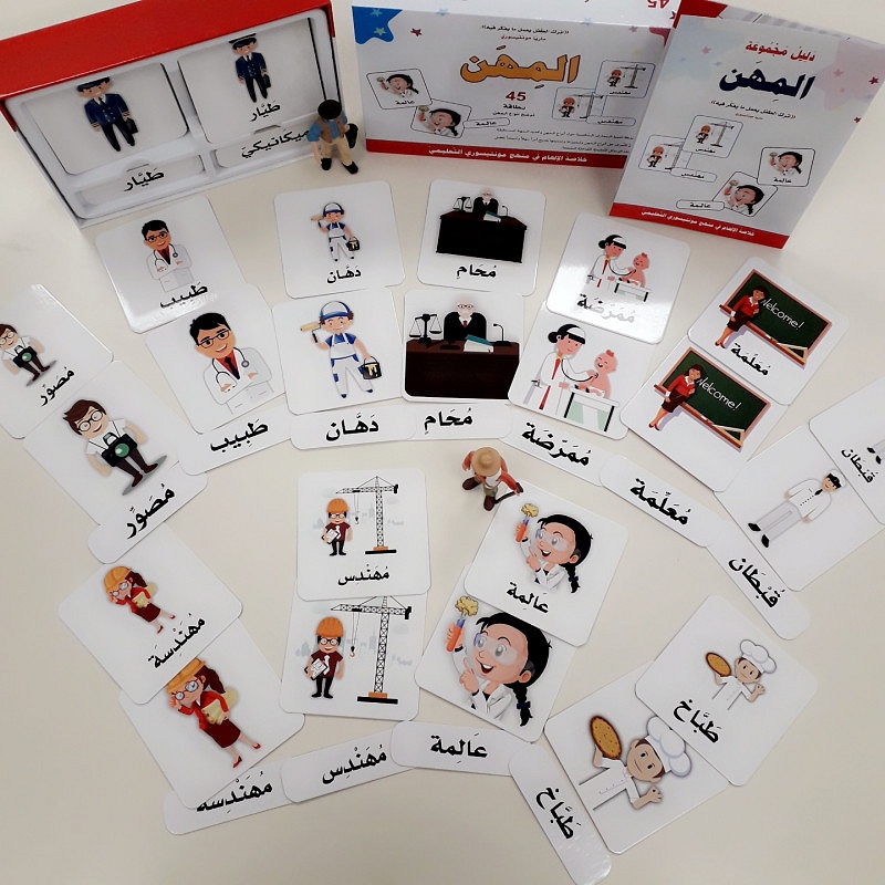 Coffret Montessori "Métiers" composé de 15 cartes qui représente les métiers les plus connues, accompagnés de leurs noms.