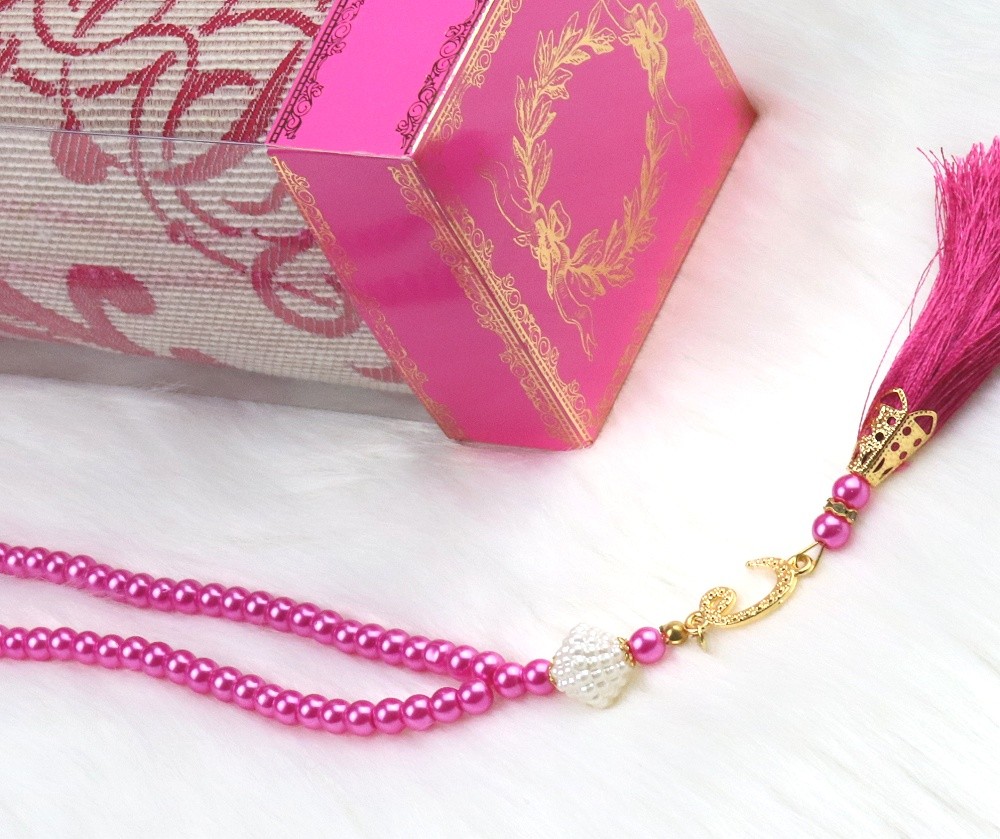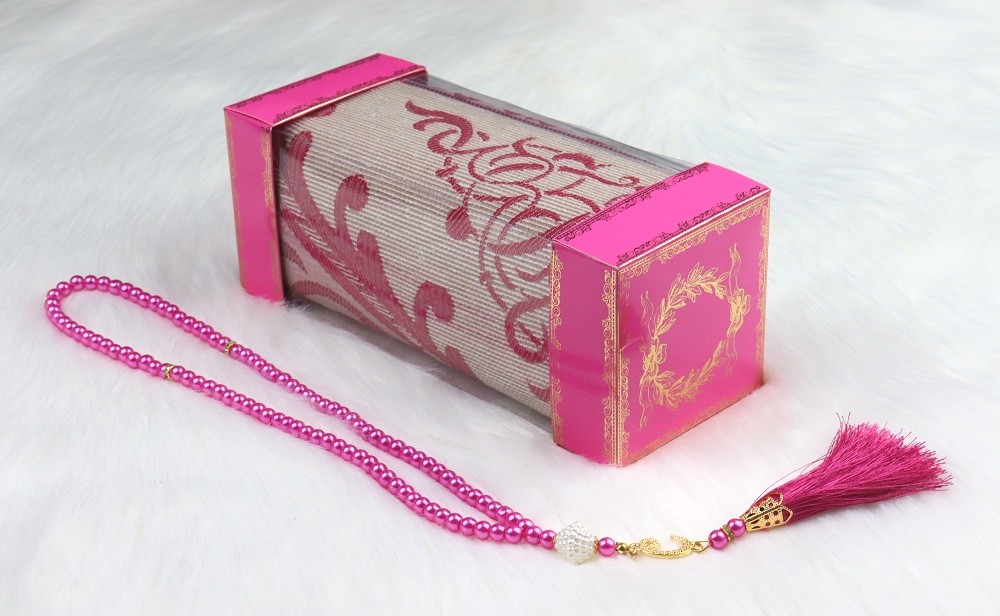 Coffret cadeau : Tapis de priere adulte + Sebha luxe (Kit priere a offrir a une femme musulmane) - Couleur rose fuchsia