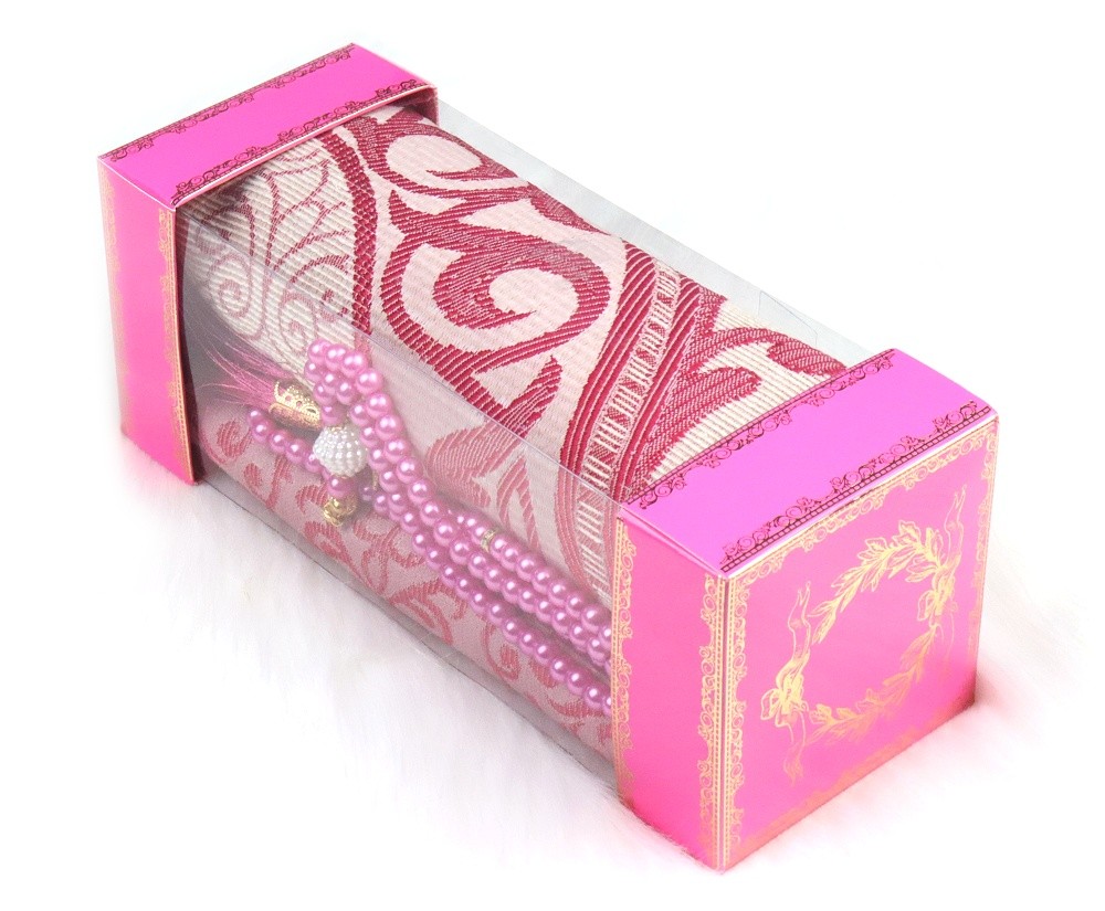 Coffret Cadeau Musulman doré : Tapis décoré brillant et Chapelet (Sebha) - Couleur Rose clair - REF. 35574 (16.90 €)