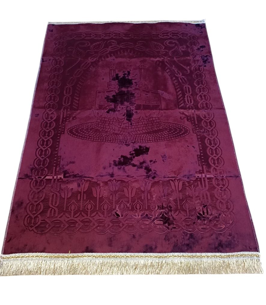 Tapis de prière rembouré une place bordeaux uni avec partie argentée - REF. 19664 (12.00 €) - En Promotion à 8.90 €