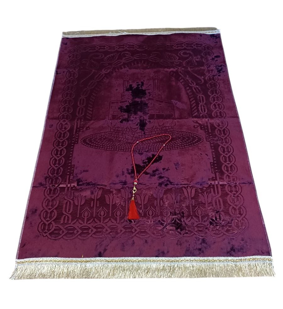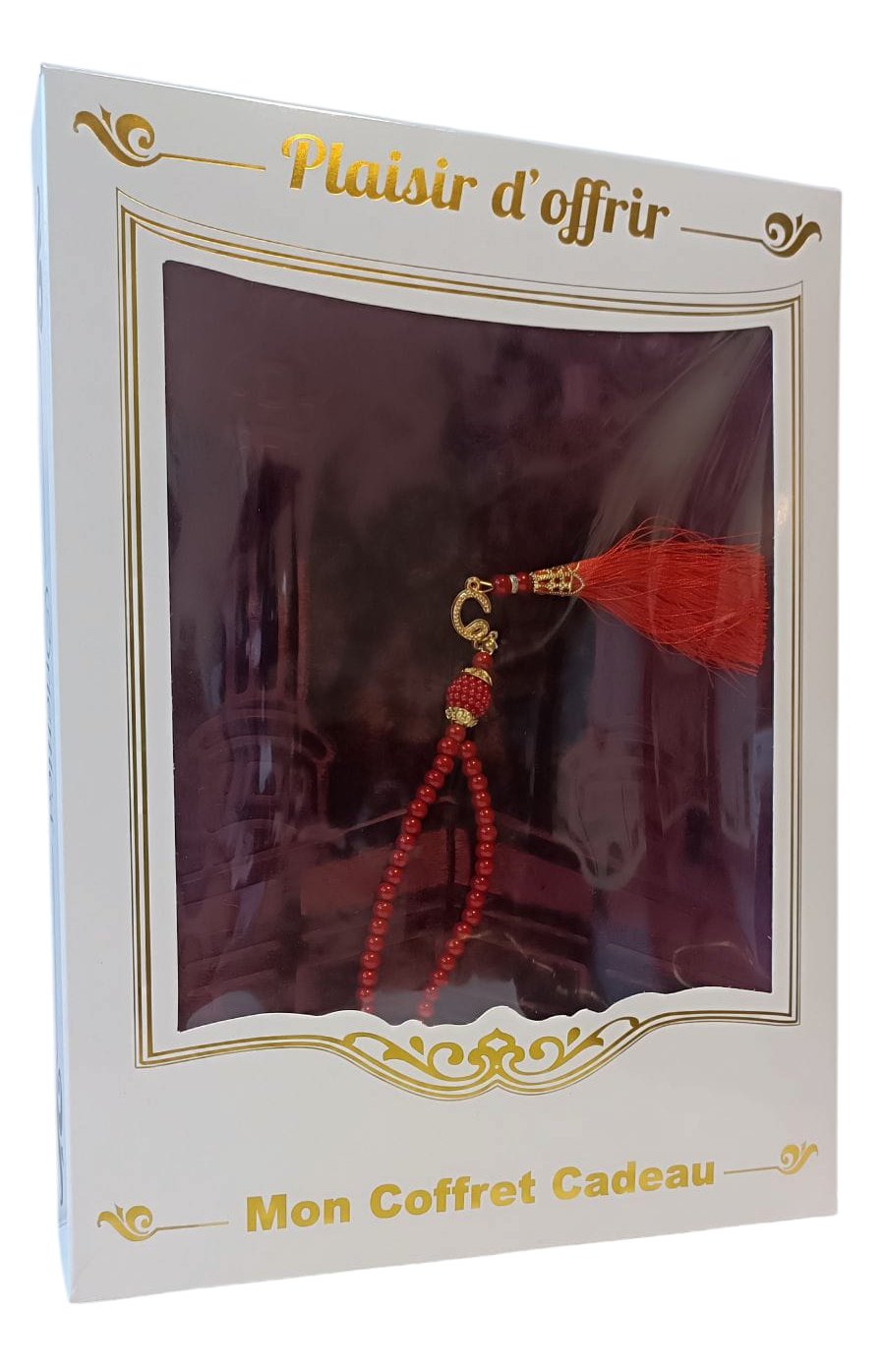 Coffret cadeau musulman : Tapis de prière musulman avec sa boite et chapelet - Couleur bordeaux Deco & Cadeau