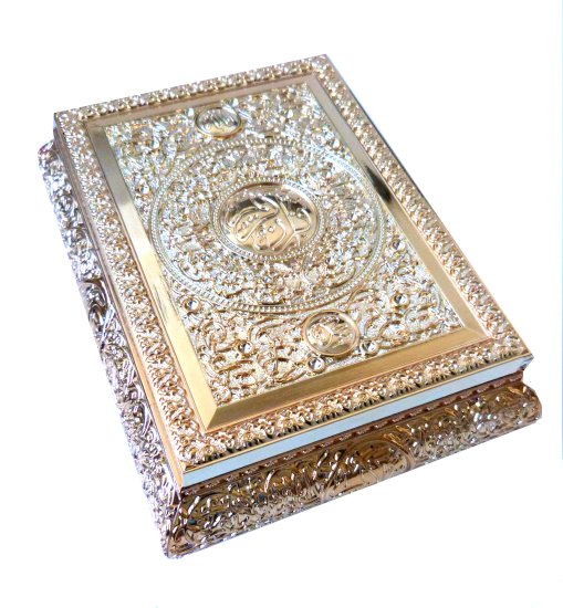 Coffret metallique dore de-luxe avec de tres jolies decorations (Sans Coran)