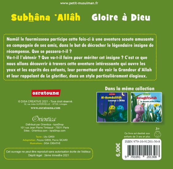 Va-t-il l’obtenir ? Que va-t-il faire pour mériter cet insigne ? C’est ce que nous allons découvrir à travers cette aventure intéressante qui ouvre les yeux et les esprits des enfants, leur permettant de voir la Grandeur d’Allah et leur rappelant de Le glorifier, dans un style particulièrement élogieux.