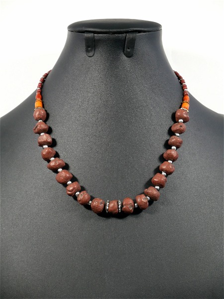 Collier ethnique artisanal avec pierres de couleur bordeaux - REF. 29730 (28.00 €)