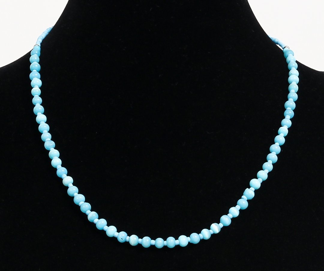 Collier ethnique artisanal imitation perles bleues claires agrémentées d'autres petites perles en métal - REF. 18970 (14.00 €)
