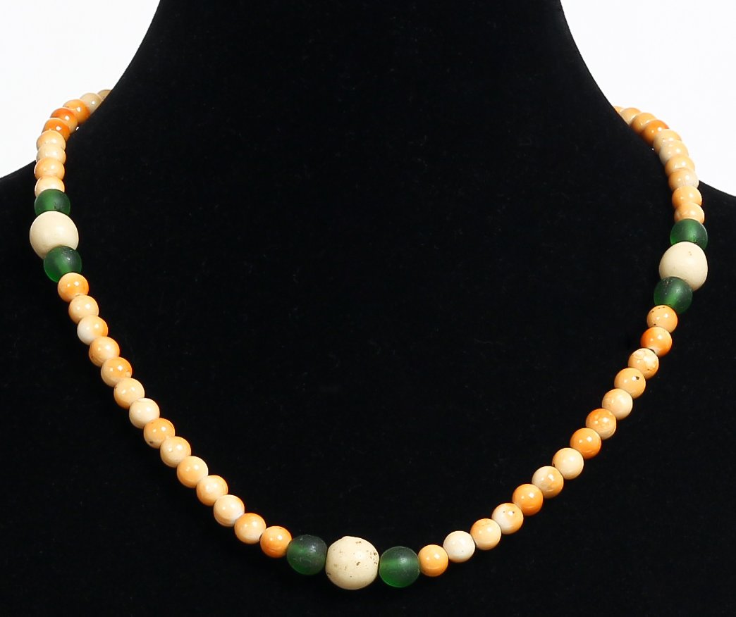 Collier ethnique artisanal imitation perles jaunes, vertes et blanches - REF. 18933 (14.00 €)